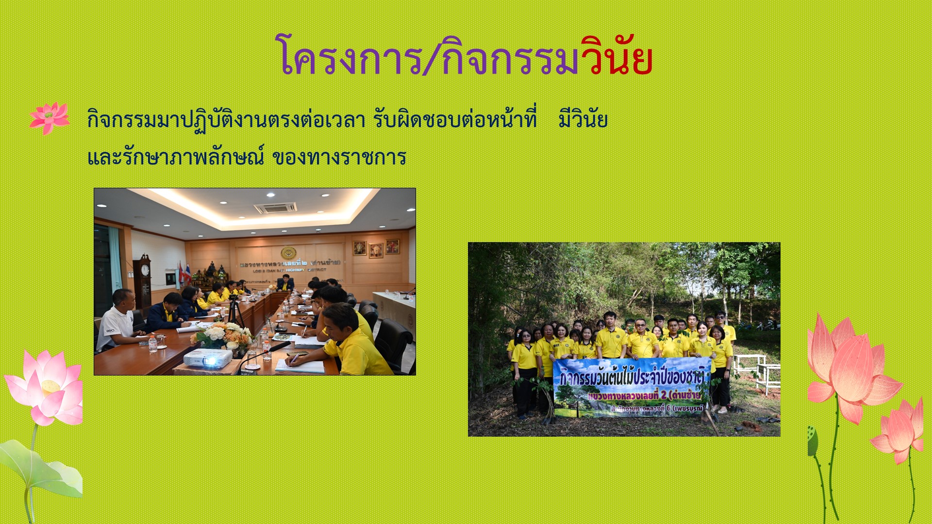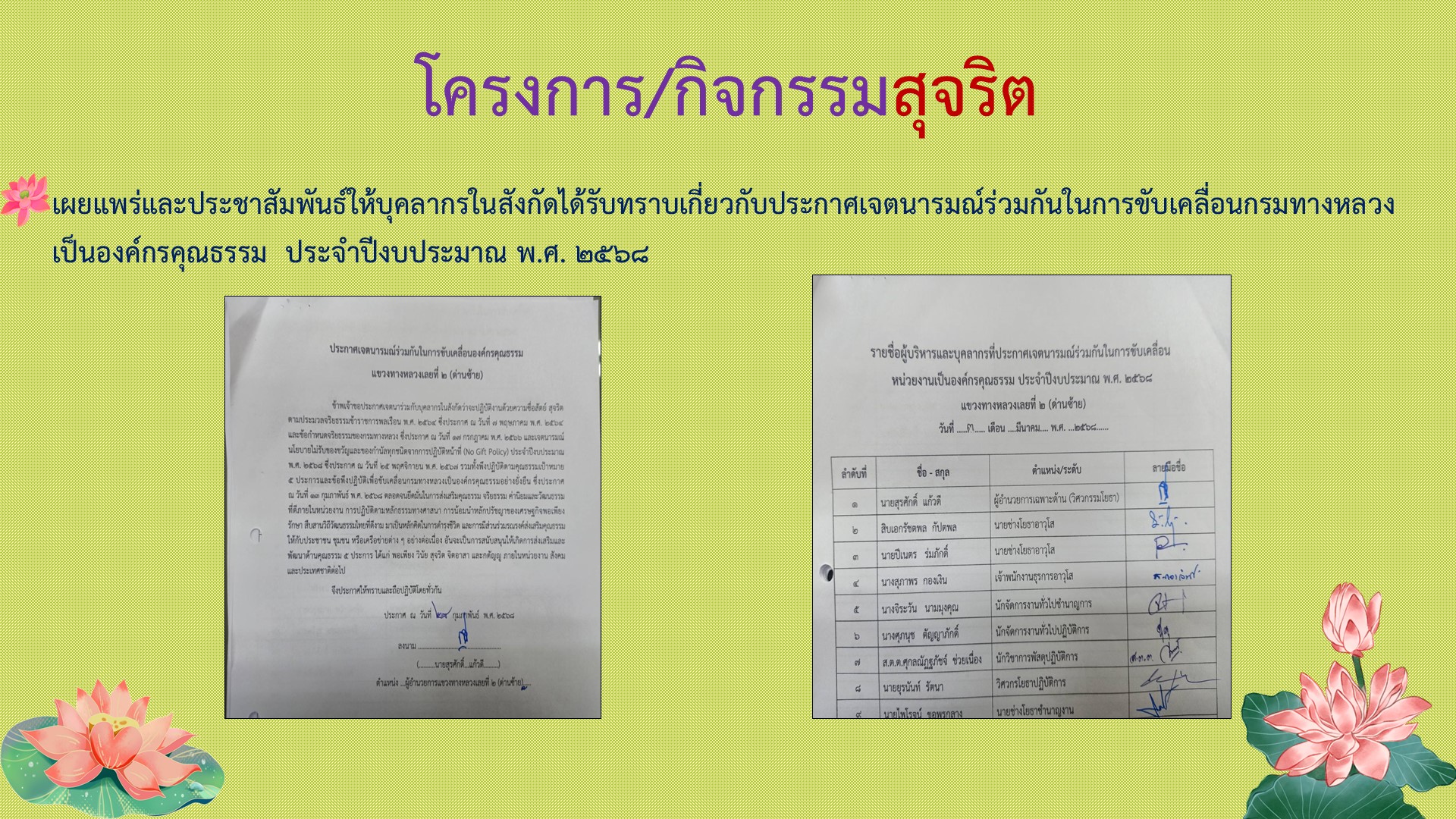 แขวงทางหลวงเลยที่ 2 (ด่านซ้าย) รายงานผลการดำเนินงานตามแผนปฏิบัติการส่งเสริมคุณธรรมจริยธรรม ประจำปีงบประมาณ พ.ศ.2568 คุณธรรม 5 ประการ