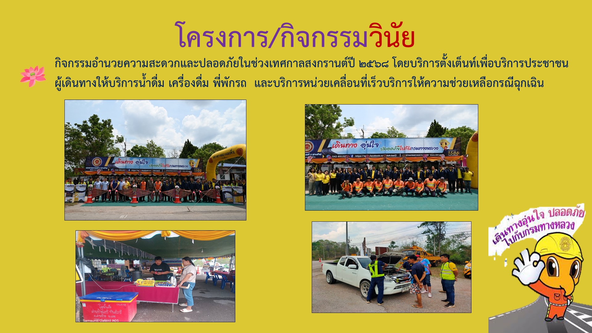 วิสัยทัศน์ : มุ่งมันบำรุงรักษาทางเสริมสร้างความปลอดภัย ให้กับผู้ใช้ทางอย่างยั่งยืน