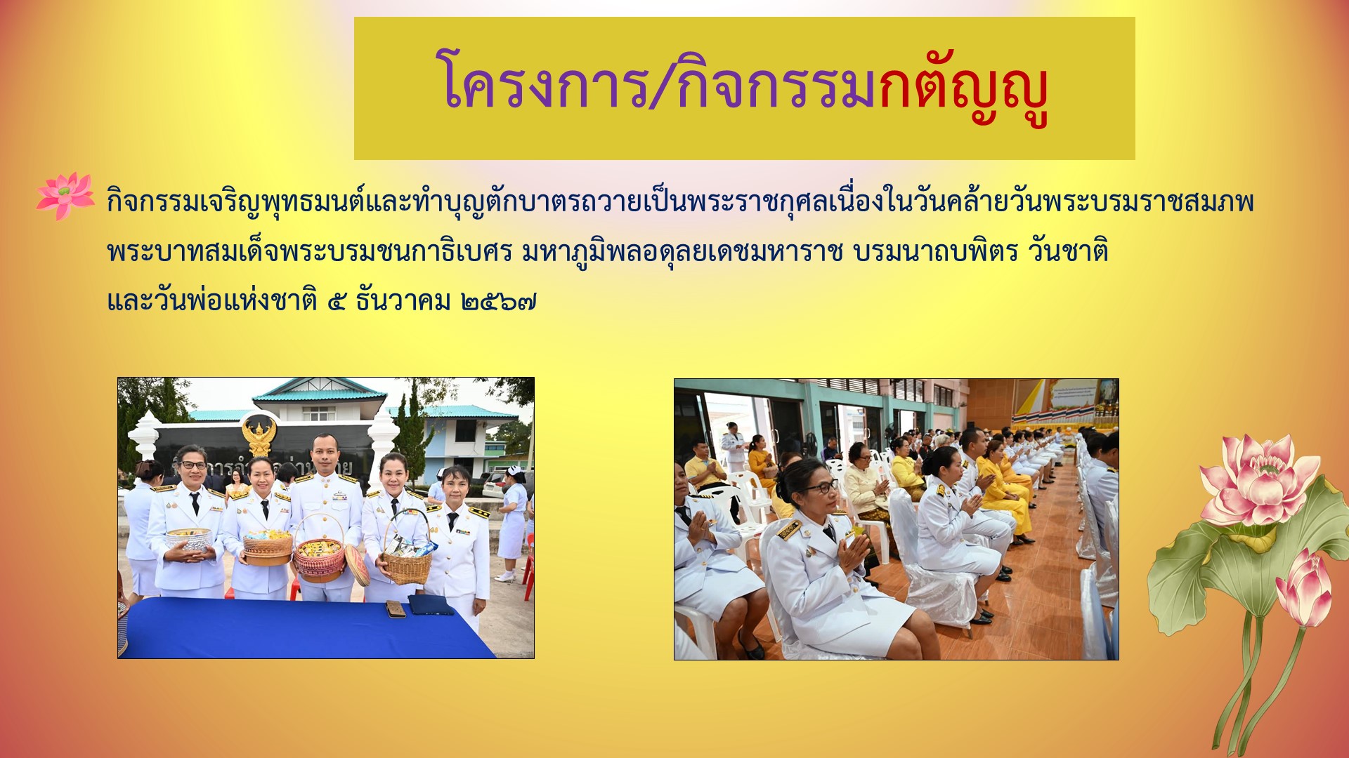 ข้อมูลภาพกิจกรรม : รายงานผลการดำเนินงานตามแผนปฏิบัติการส่งเสริมคุณธรรมจริยธรรม ประจำปีงบประมาณ พ.ศ.2568 คุณธรรม 5 ประการ