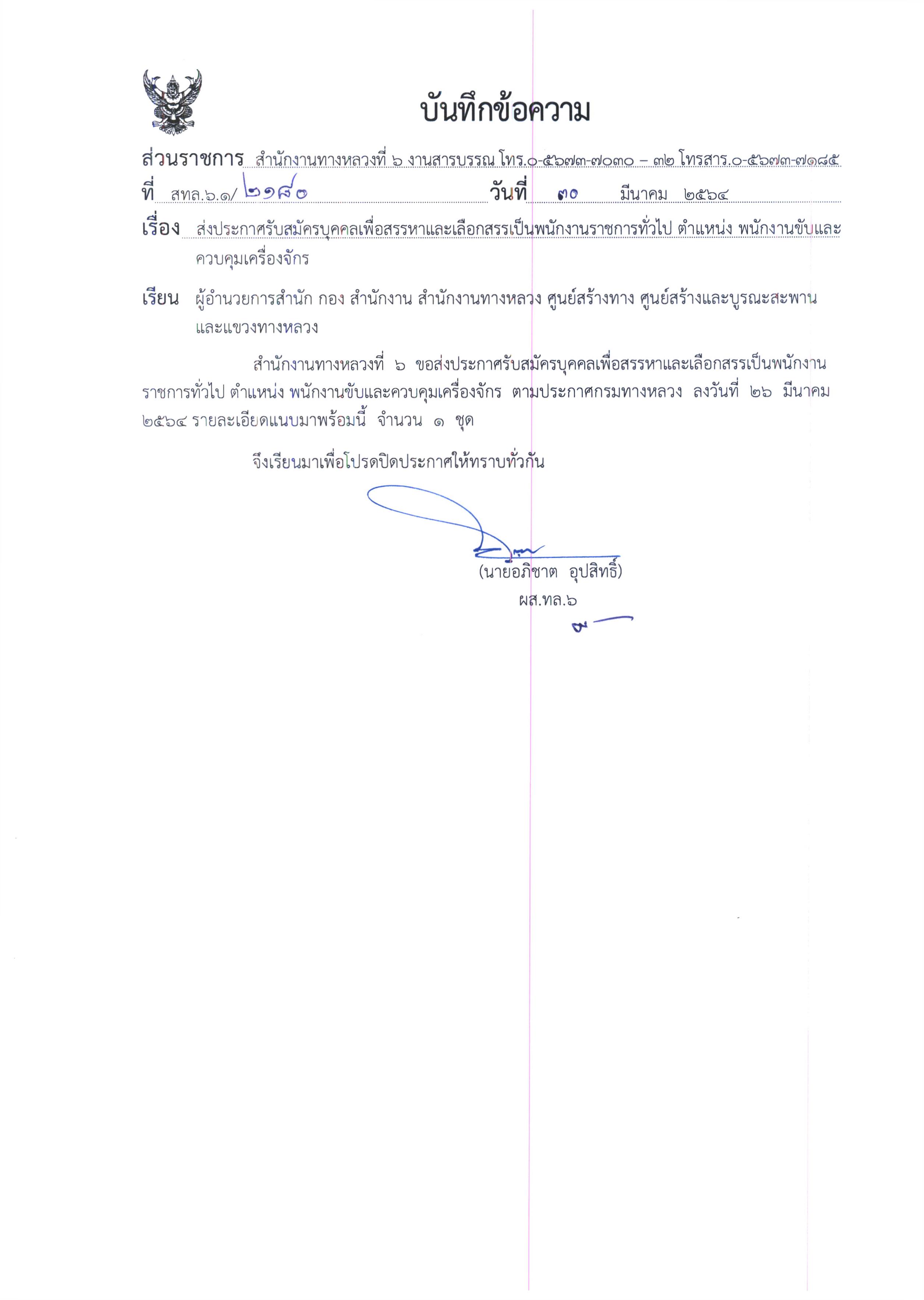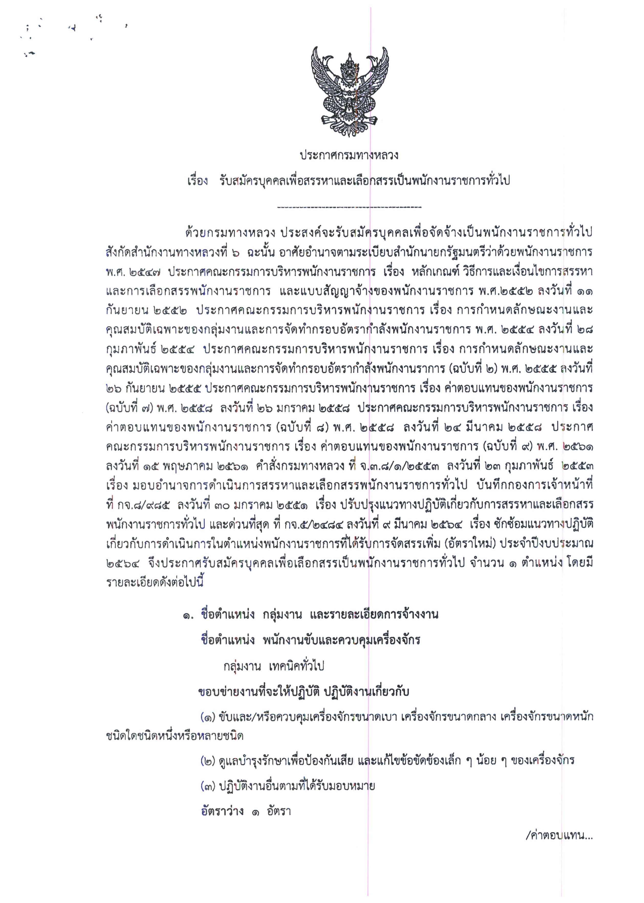 ประกาศรับสมัครบุคคลเพื่อสรรหาและเลือกสรรเป็นพนักงานราชการทั่วไป ตำแหน่งพนักงานขับและควบคุมเครื่องจักร