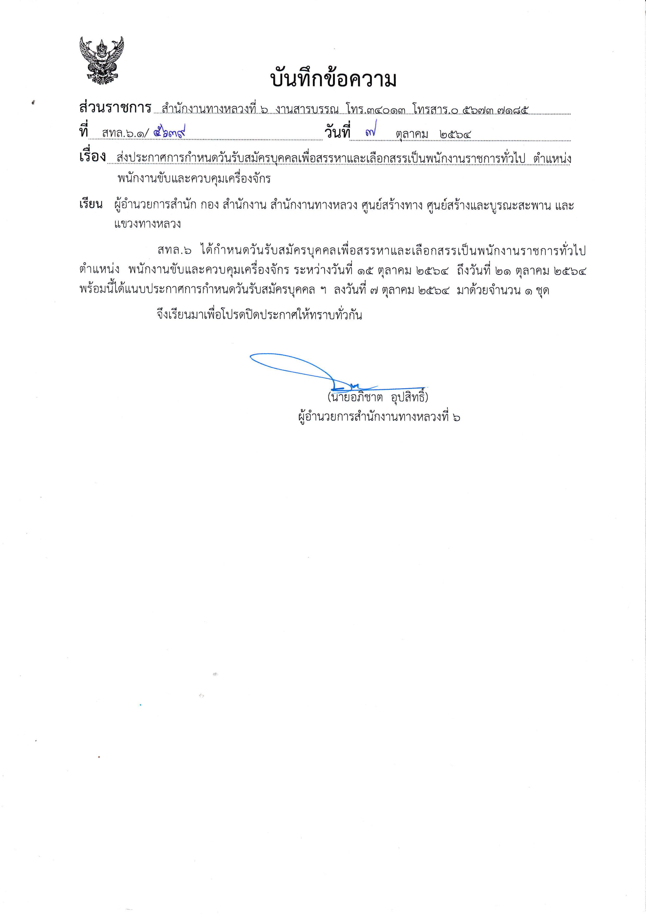 ประกาศรับสมัครบุคคลเพื่อสรรหาและเลือกสรรเป็นพนักงานราชการทั่วไป ตำแหน่งพนักงานขับและควบคุมเครื่องจักร ตั้งแต่วันที่ 15 ตุลาคม 2564 - 21 ตุลาคม 2564