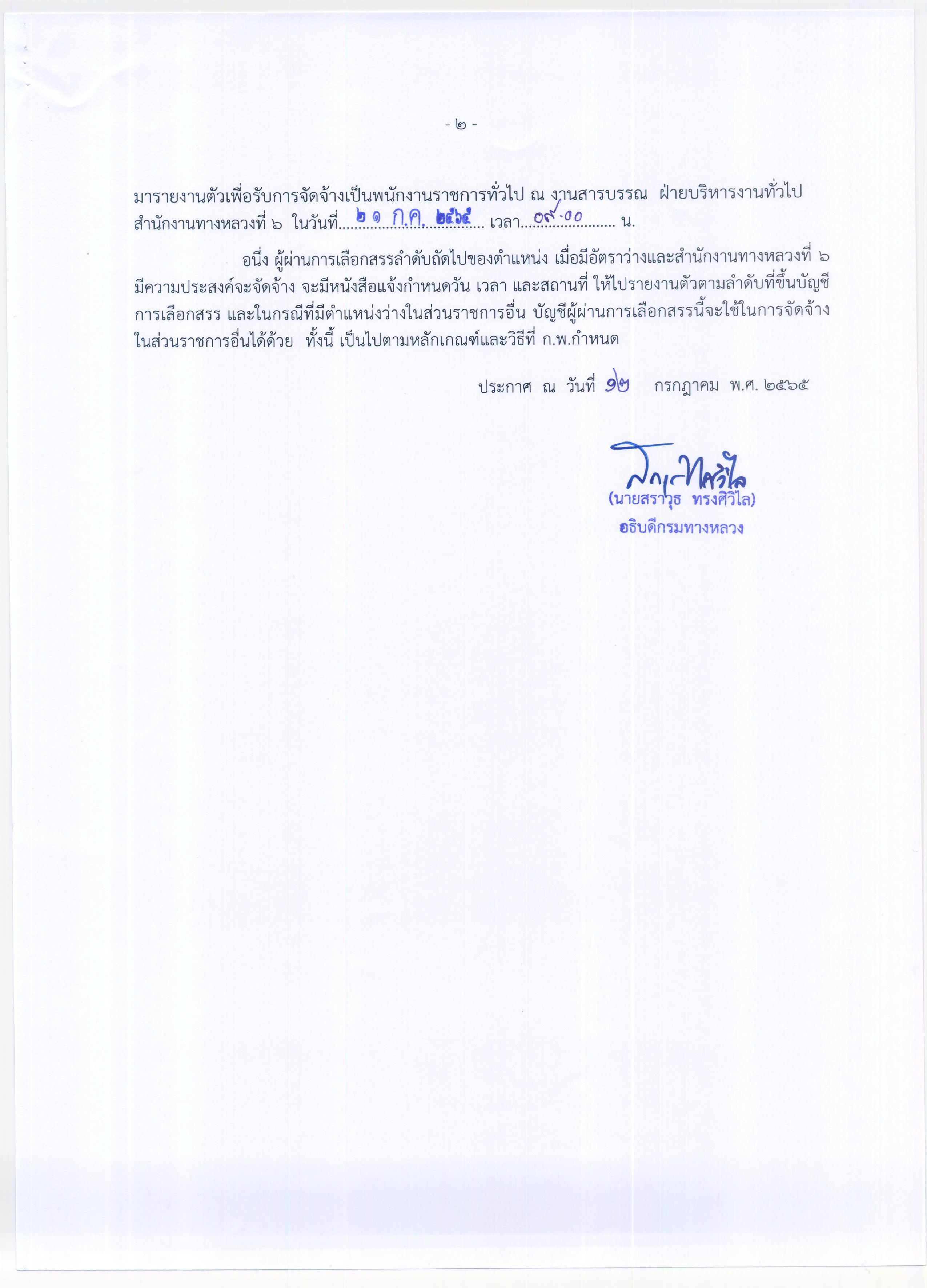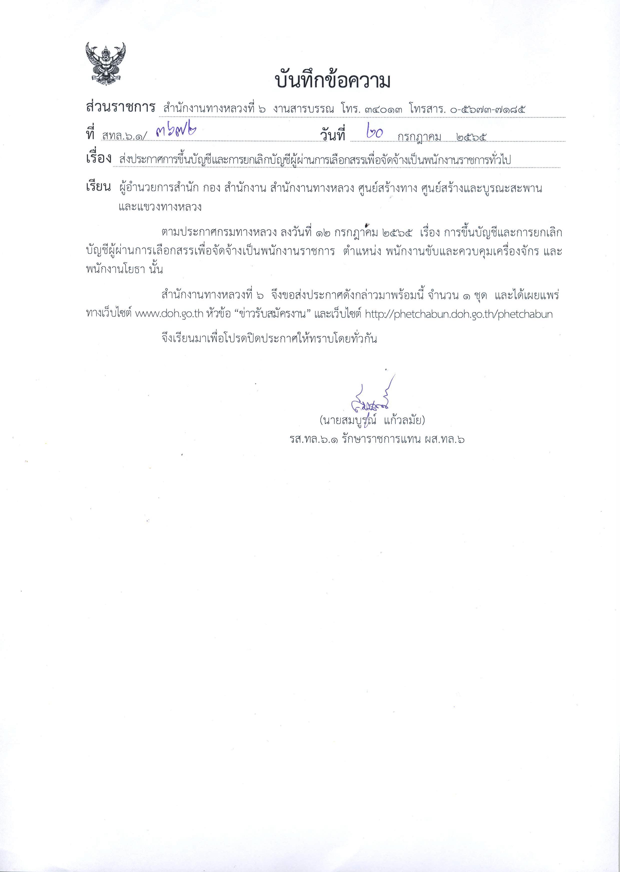 ข้อมูลประกาศรับสมัครพนักงานราชการ : สำนักงานทางหลวงที่ 6 (เพชรบูรณ์) ประกาศผลสอบผู้ผ่านการเลือกสรรเพื่อจัดจ้างเป็นพนักงานราชการทั่วไป ตำแหน่งพนักงานโยธา, ตำแหน่งพนักงานขับและควบคุมเครื่องจักร