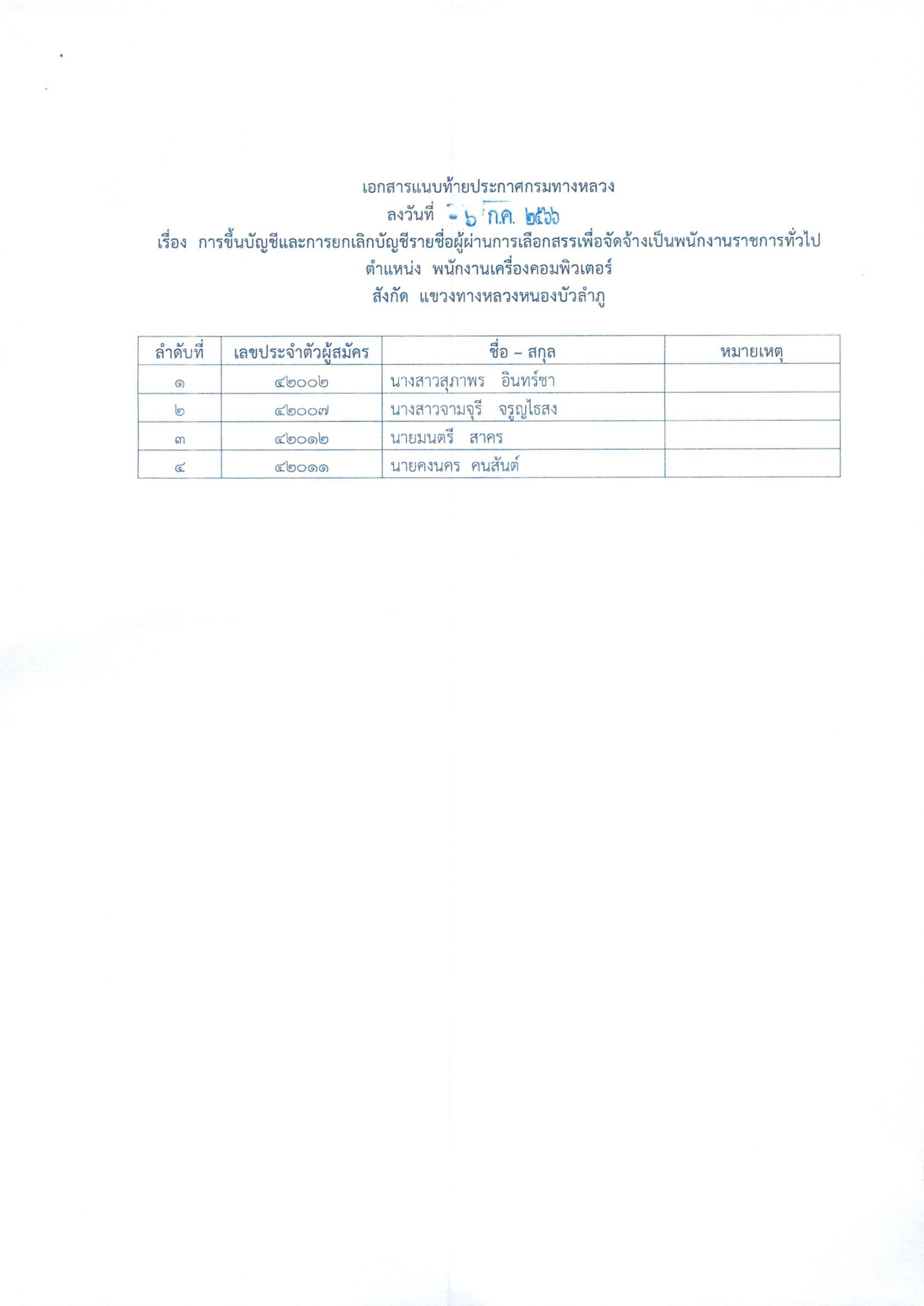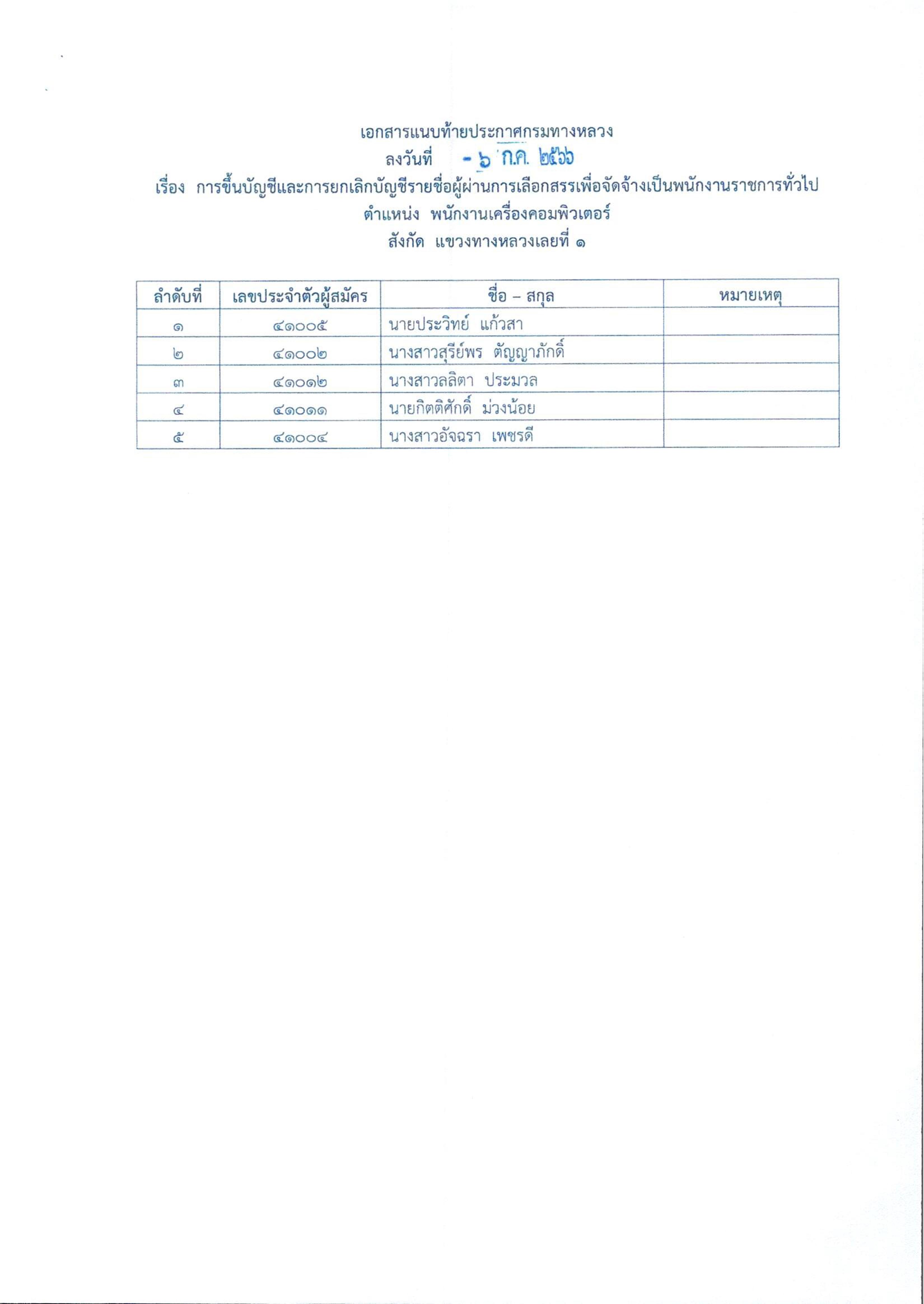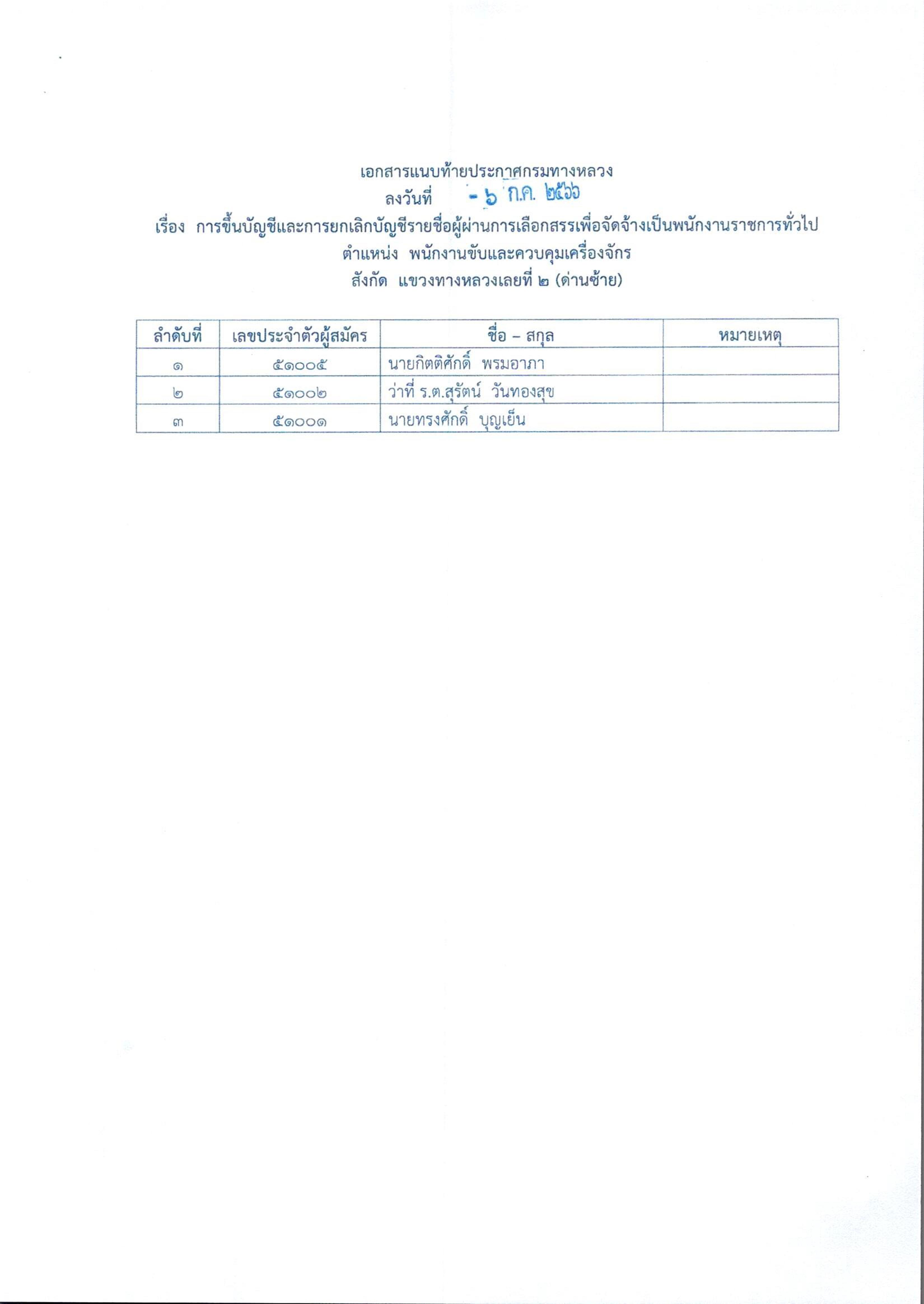 สำนักงานทางหลวงที่ 6 (เพชรบูรณ์) ประกาศผลสอบผู้ผ่านการเลือกสรรเพื่อจัดจ้างเป็นพนักงานราชการทั่วไป ตำแหน่ง นิติกร, พนักงานโยธา, พนักงานเครื่องกล, พนักงานเครื่องคอมพิวเตอร์, พนักงานขับและควบคุมเครื่องจักร