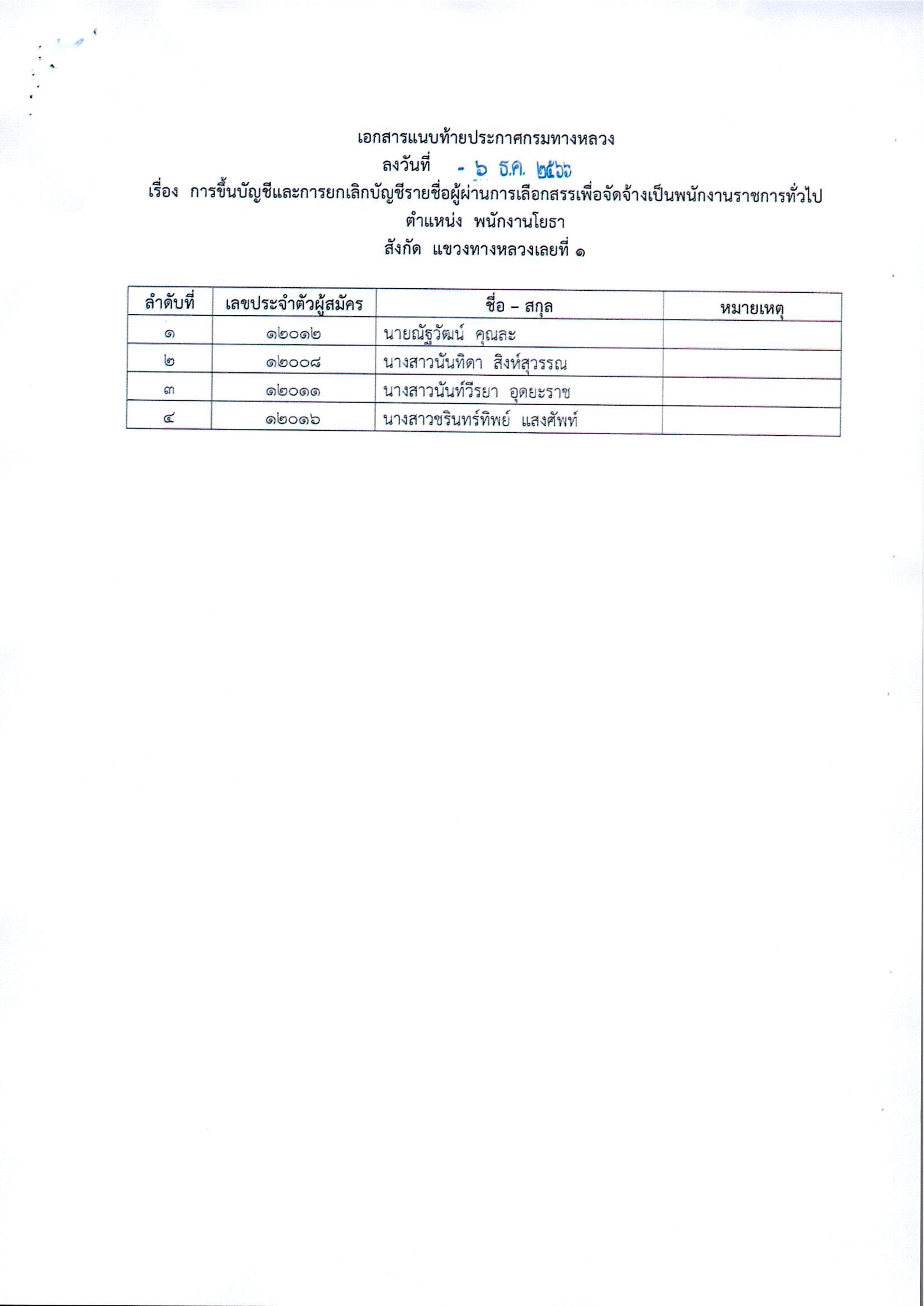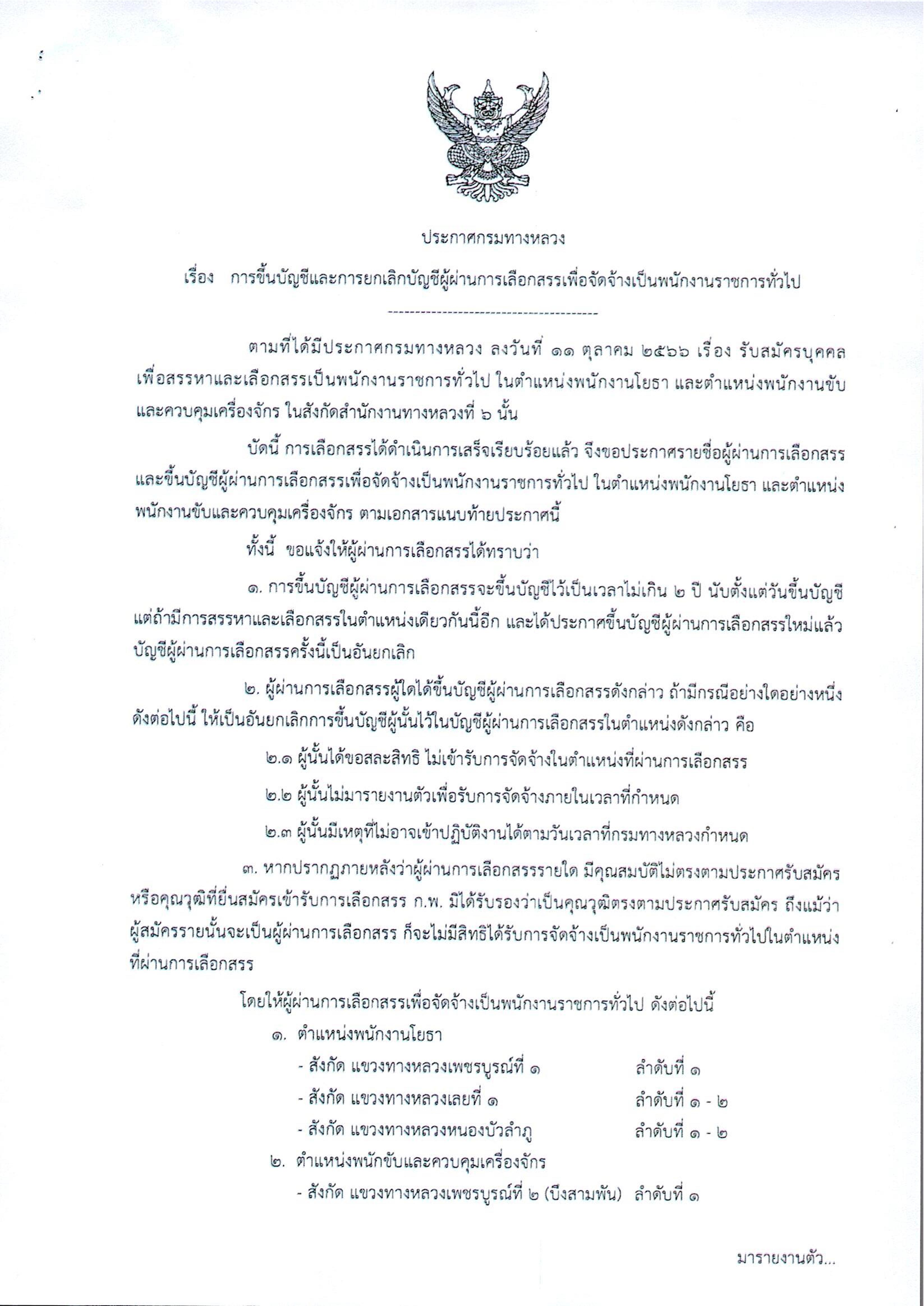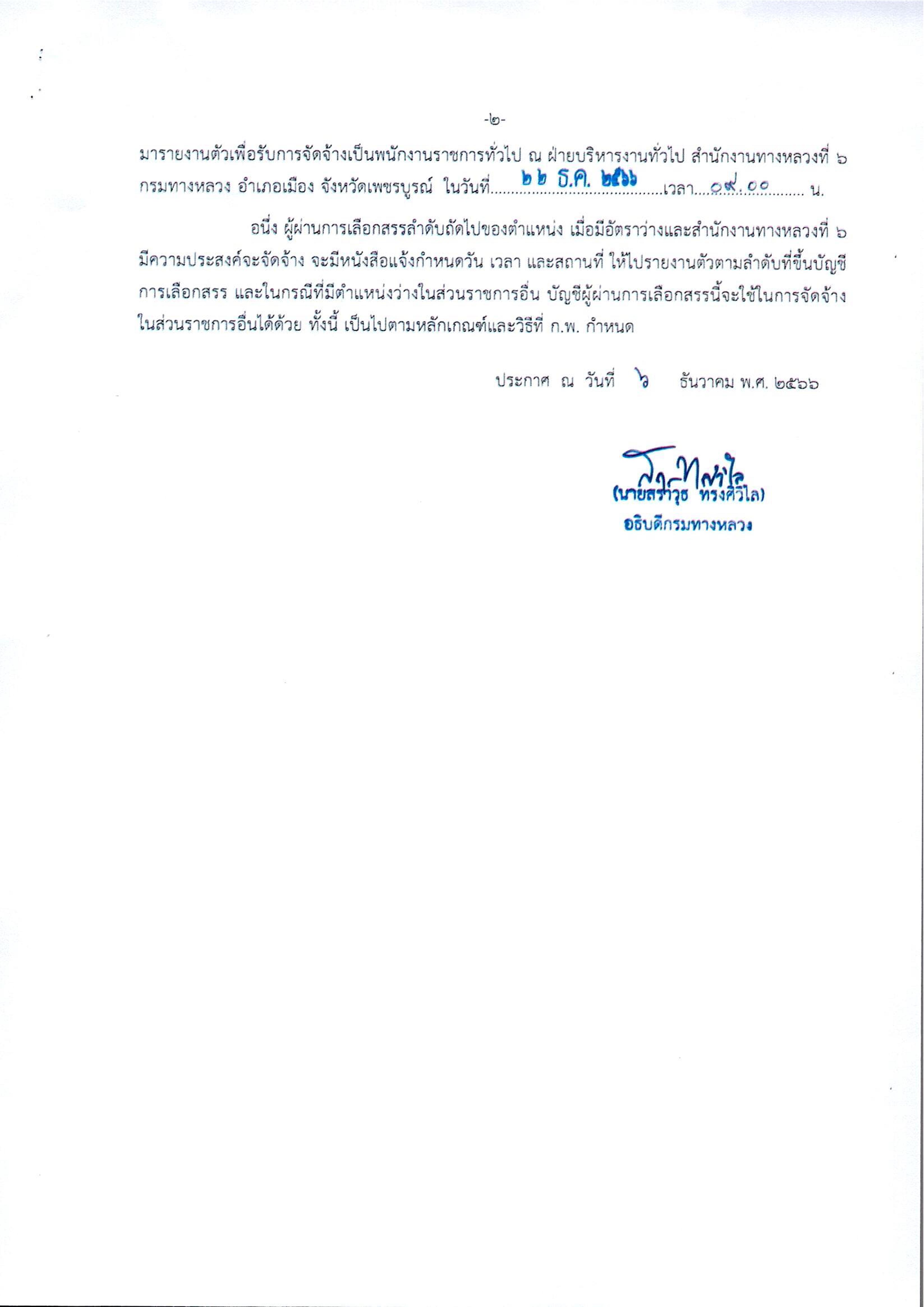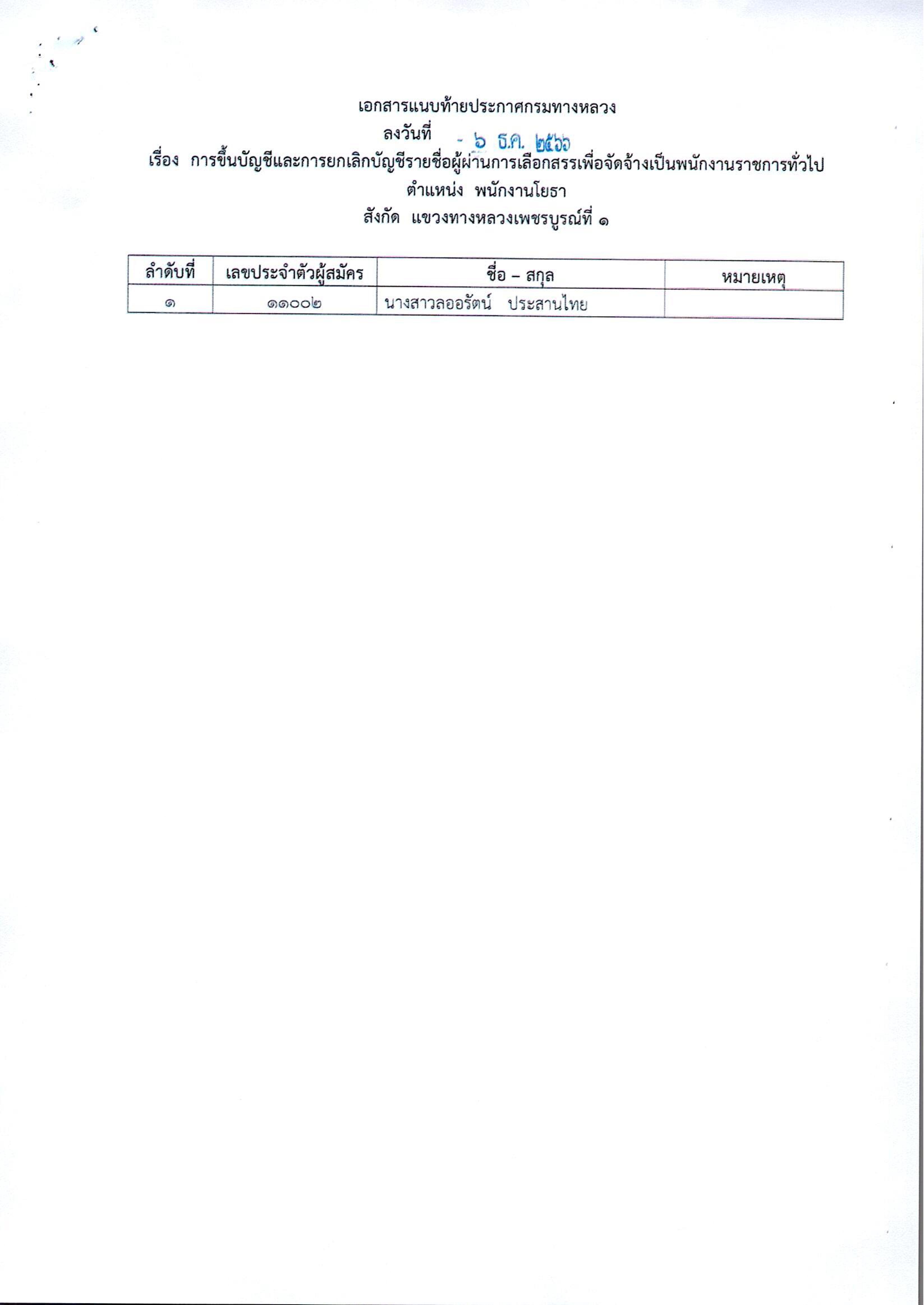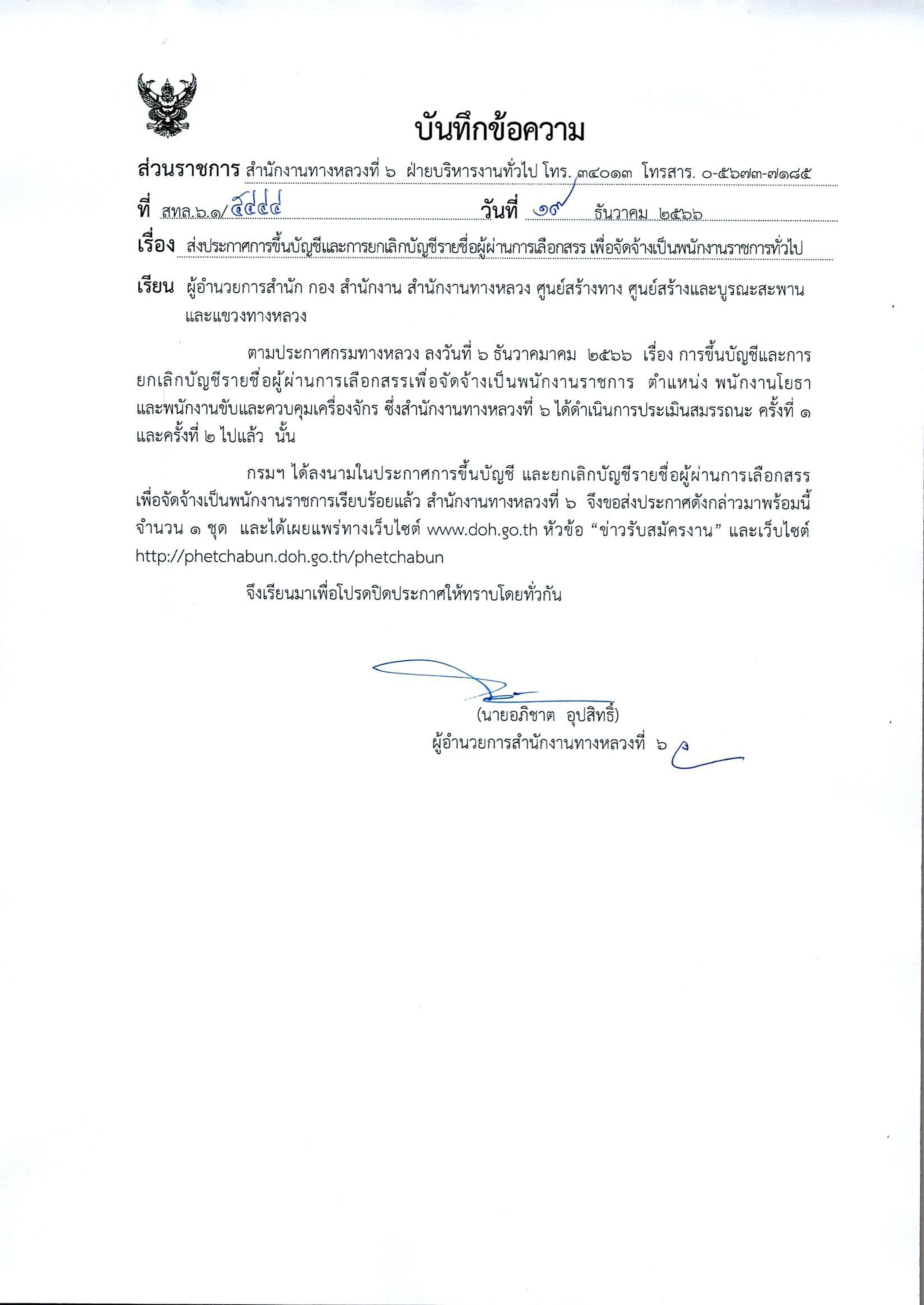 สำนักงานทางหลวงที่ 6 (เพชรบูรณ์) ประกาศผลสอบผู้ผ่านการเลือกสรรเพื่อจัดจ้างเป็นพนักงานราชการทั่วไป ตำแหน่งพนักงานโยธา, พนักงานขับและควบคุมเครื่องจักร