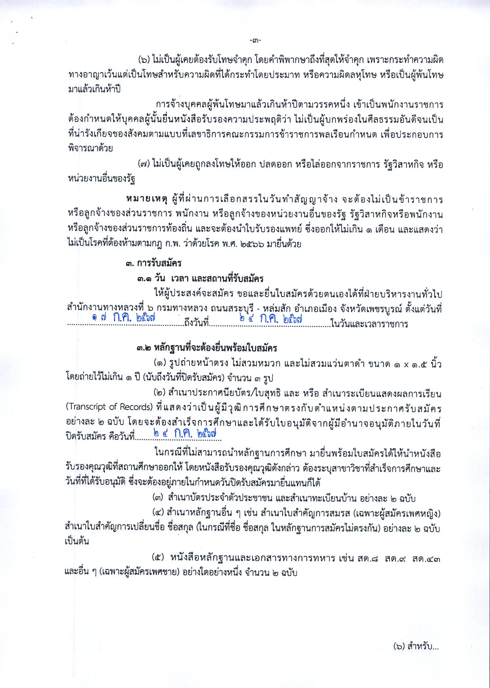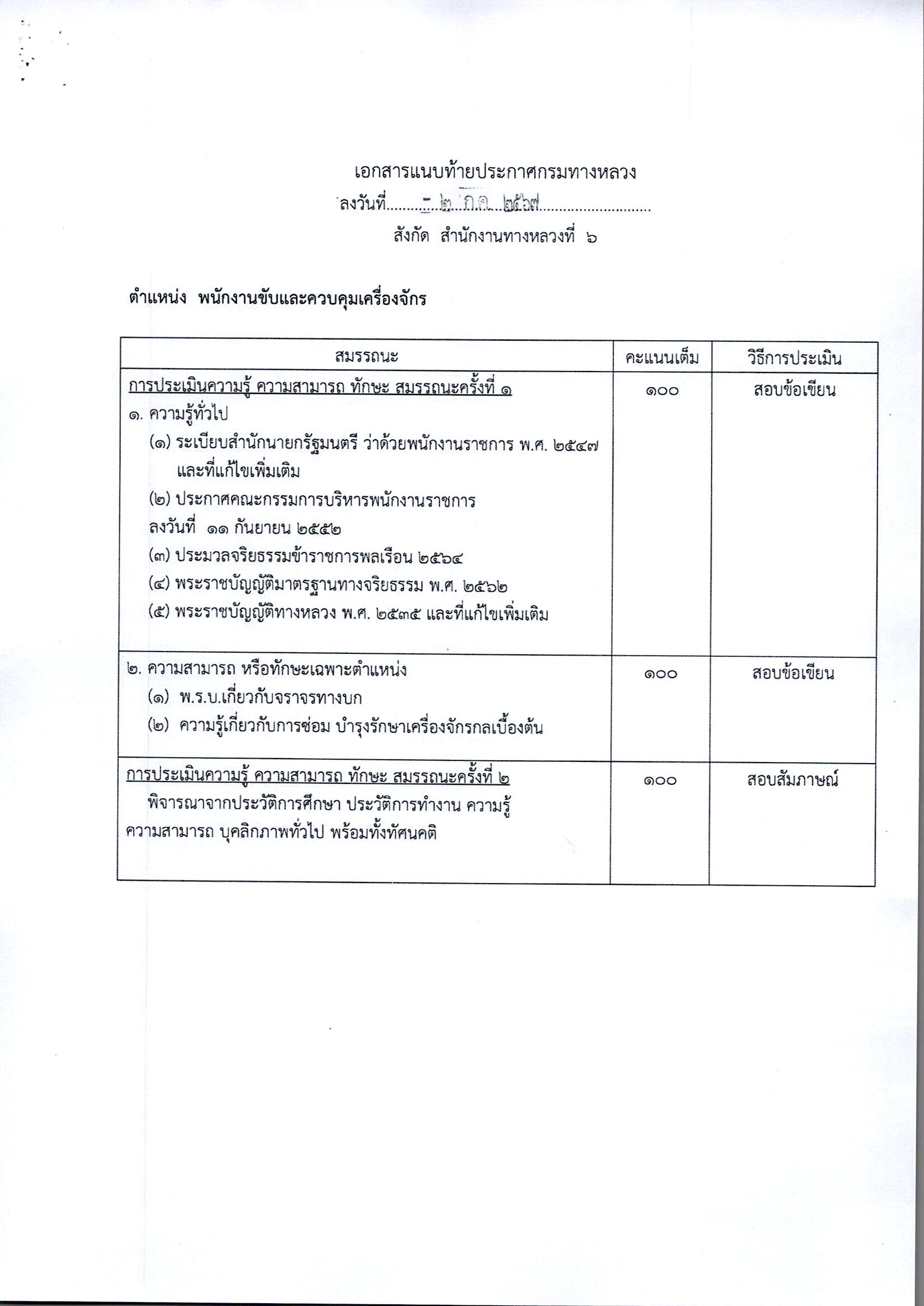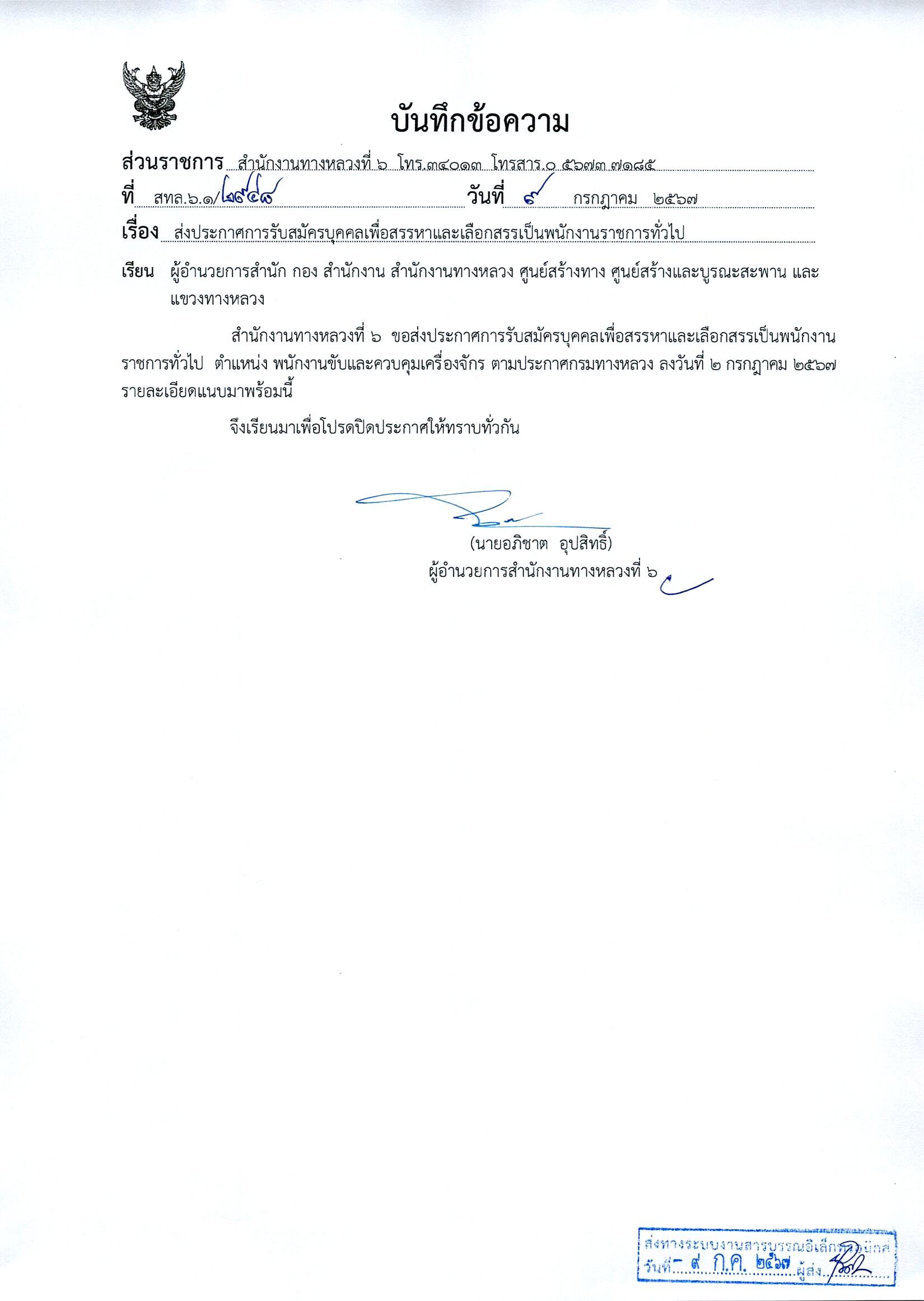 ข้อมูลประกาศรับสมัครพนักงานราชการ : สำนักงานทางหลวงที่ 6 (เพชรบูรณ์) ประกาศรับสมัครบุคคลเพื่อสรรหาและเลือกสรรเป็นพนักงานราชการทั่วไป ตำแหน่งพนักงานขับและควบคุมเครื่องจักร