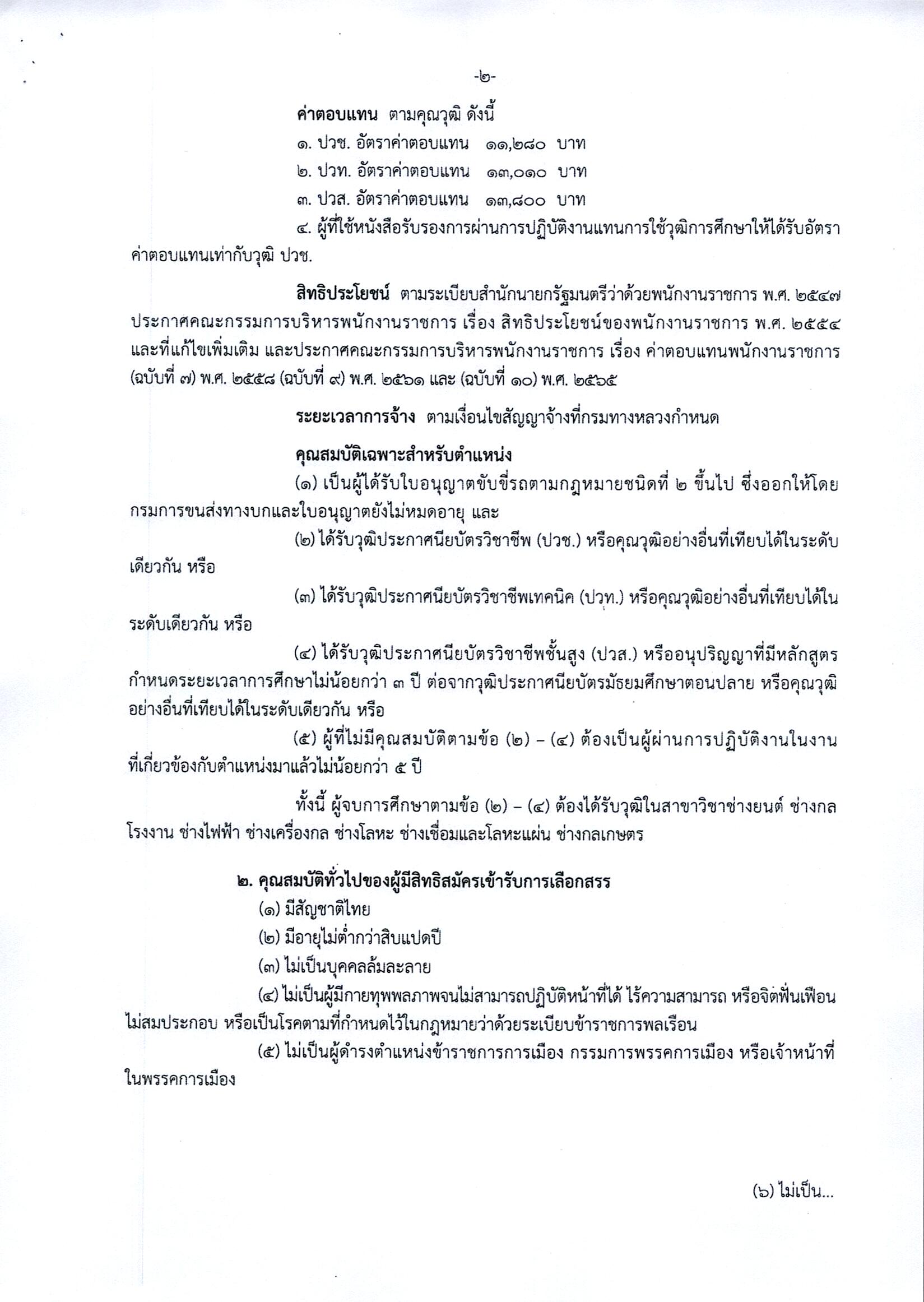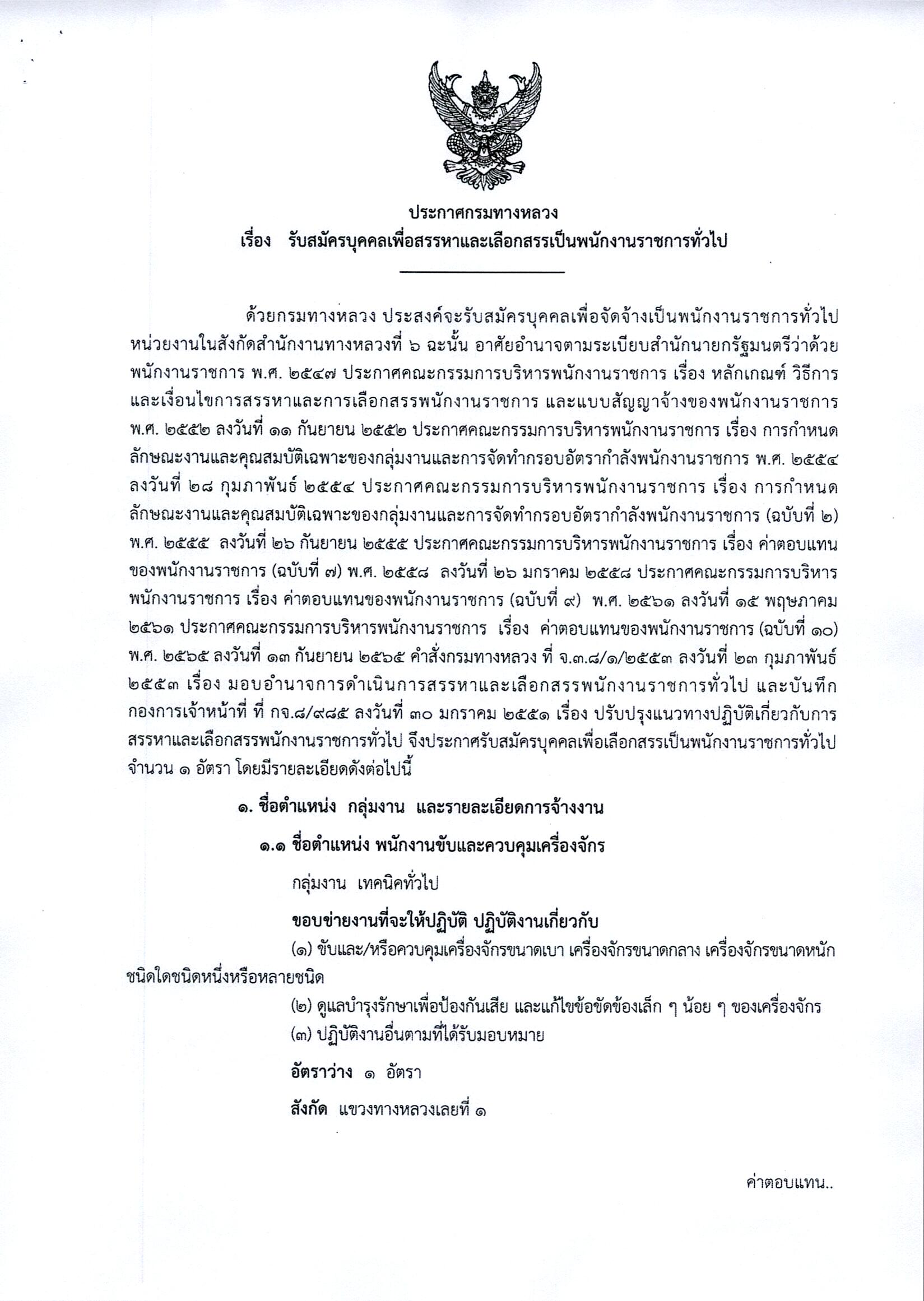 สำนักงานทางหลวงที่ 6 (เพชรบูรณ์) ประกาศรับสมัครบุคคลเพื่อสรรหาและเลือกสรรเป็นพนักงานราชการทั่วไป ตำแหน่งพนักงานขับและควบคุมเครื่องจักร