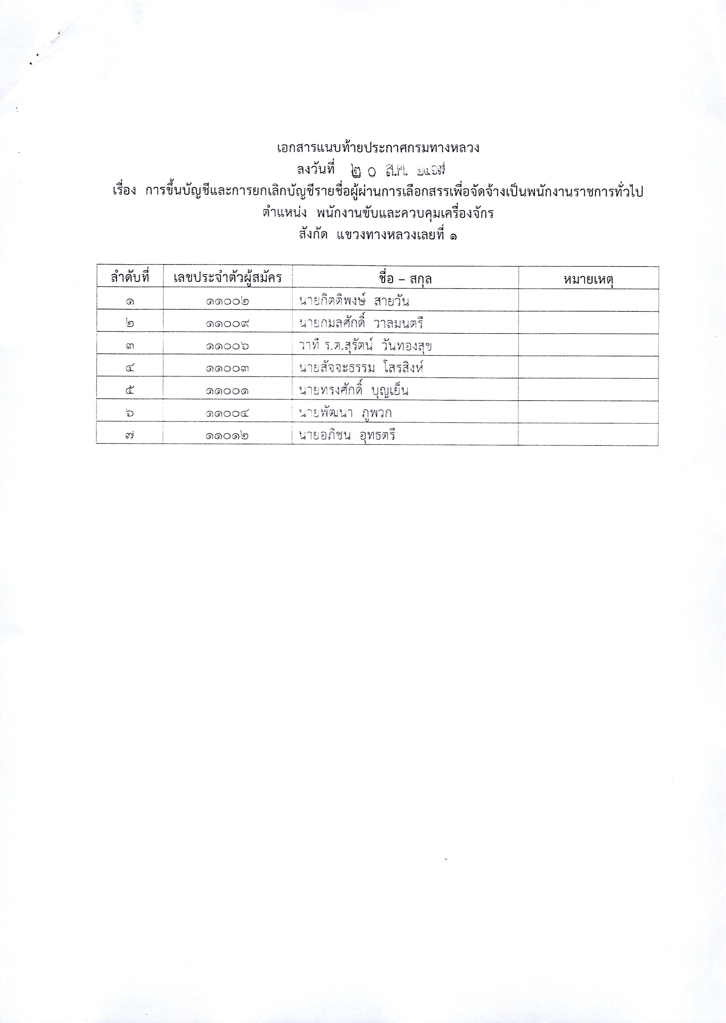 ประกาศขึ้นบัญชีและยกเลิกบัญชีรายชื่อผู้ผ่านการเลือกสรรเพื่อจัดจ้างเป็นพนักงานราชการทั่วไป
