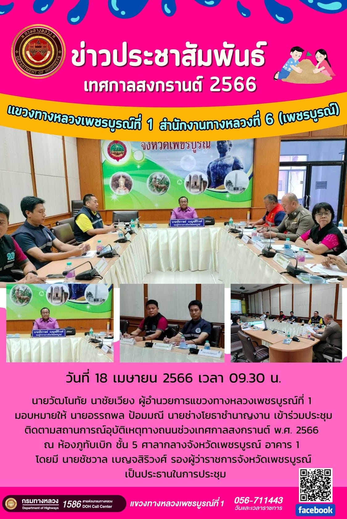 นายจิระพงศ์ เทพพิทักษ์ รองอธิบดีฝ่ายบำรุงทาง กรมทางหลวง ลงพื้นที่ตรวจเยี่ยมเพื่อสร้างขวัญกำลังใจ รับฟังปัญหาอุปสรรคพร้อมให้ข้อเสนอแนะในการปฏิบัติงาน แก่เจ้าหน้าที่แขวงทางหลวงเพชรบูรณ์ที่ 1