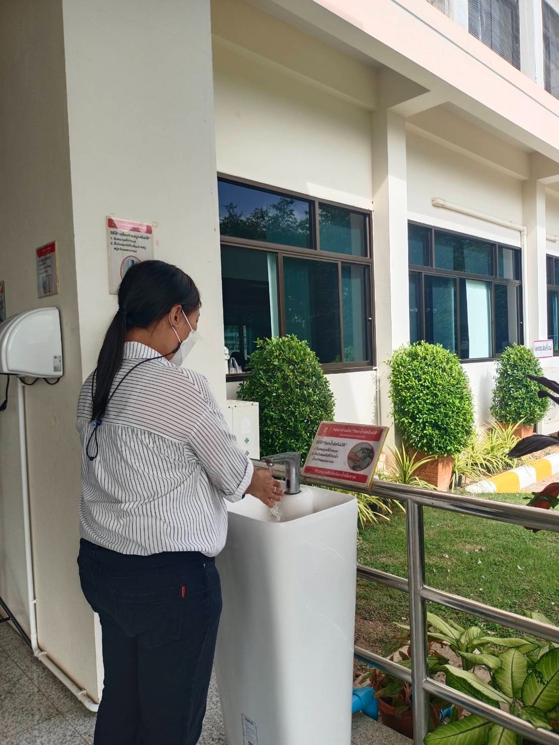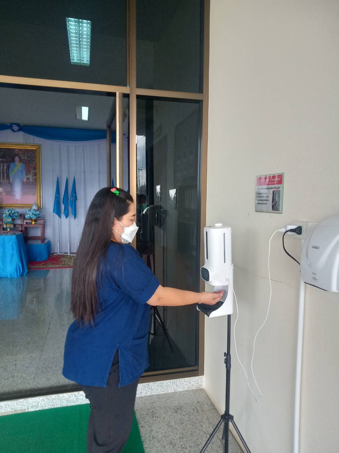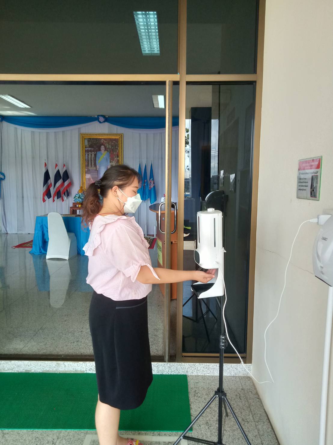 ตั้งจุดคัดกรองด้วยเครื่องวัดอุณหภูมิและลงทะเบียนไทยชนะบริเวณทางเข้าหน้าสำนักงาน ตรวจวัดไข้ และคัดกรองข้าราชการ เจ้าหน้าที่ ประชาชน ที่มาติดต่อราชการเพื่อเฝ้าระวังและป้องกันการแพร่ระบาดเชื้อไวรัส COVID – 19