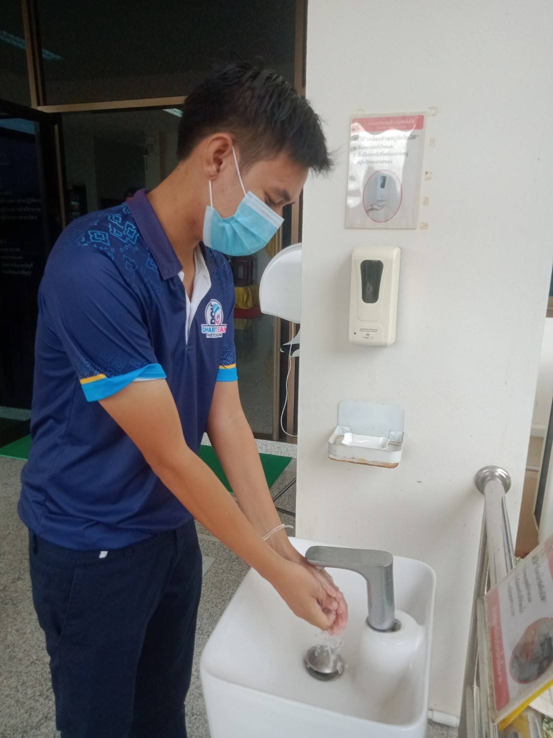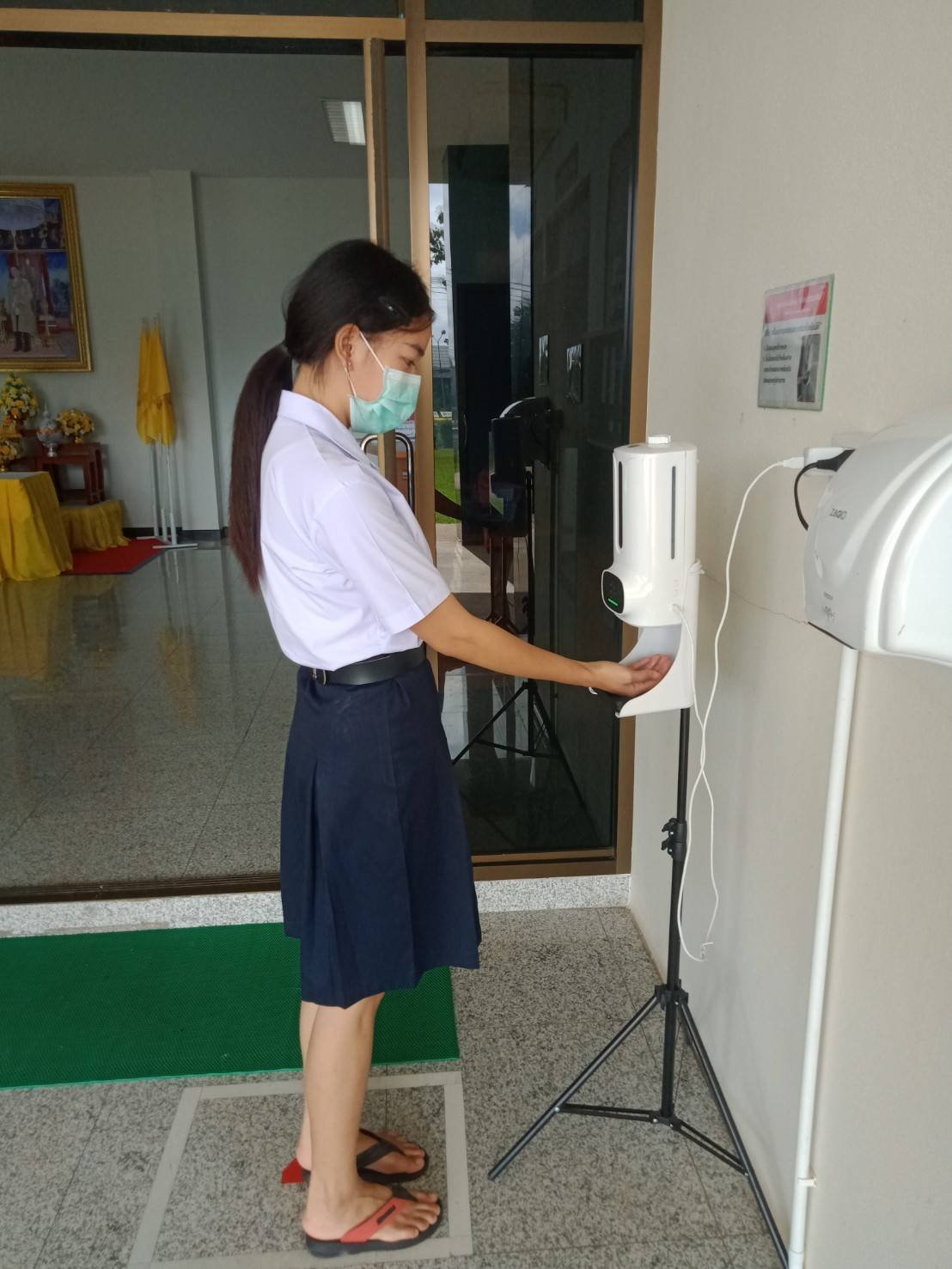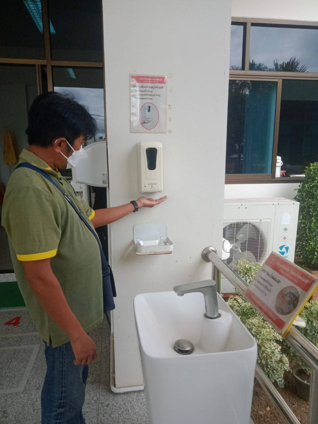 ตั้งจุดคัดกรองด้วยเครื่องวัดอุณหภูมิและลงทะเบียนไทยชนะ บริเวณทางเข้าหน้าสำนักงาน ตรวจวัดไข้ และคัดกรองข้าราชการ เจ้าหน้าที่ ประชาชน ที่มาติดต่อราชการ เพื่อเฝ้าระวังและป้องกันการแพร่ระบาดเชื้อไวรัส COVID – 19