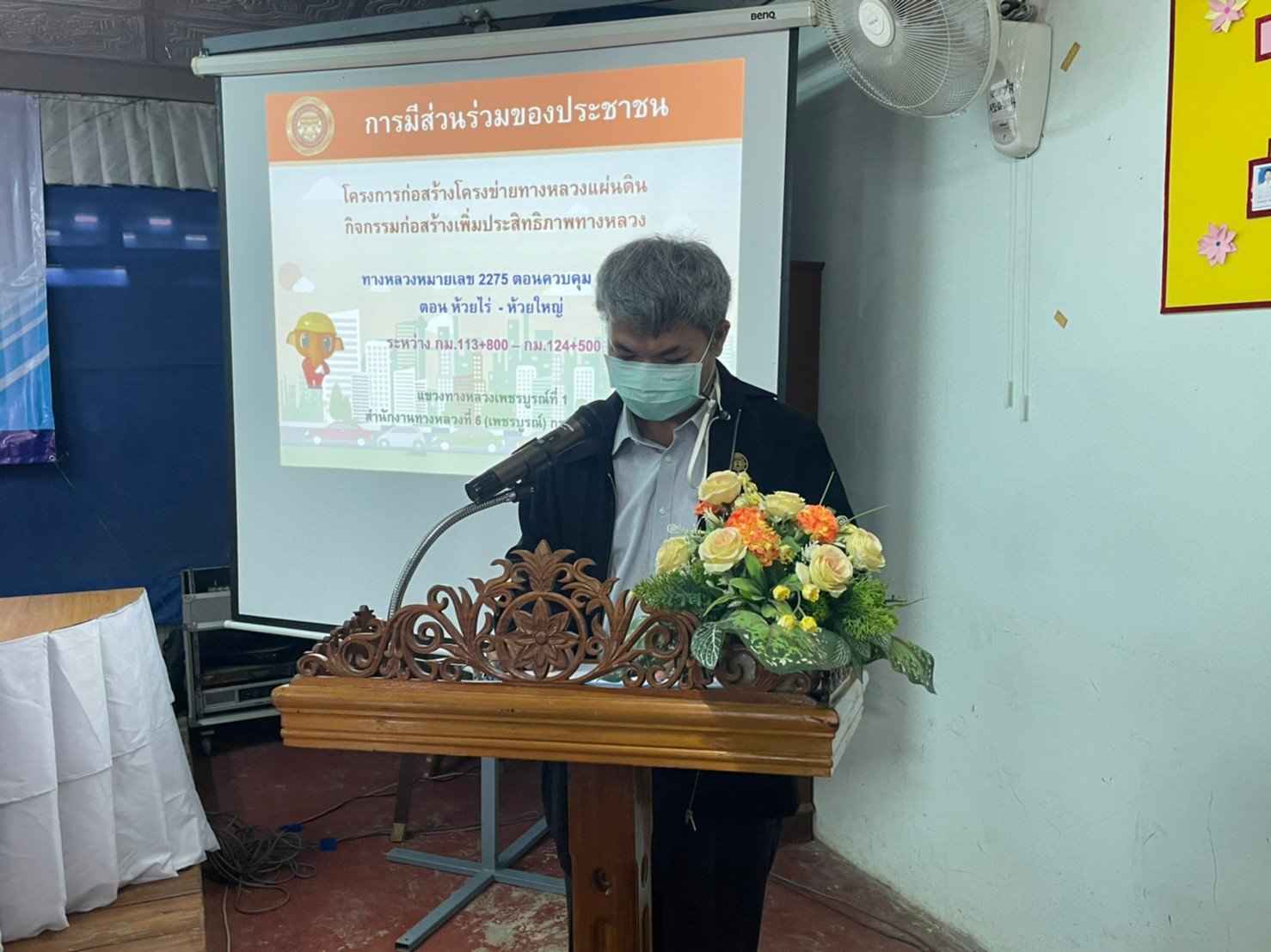 จัดการประชุมการมีส่วนร่วมของประชาชนโครงการก่อสร้างโครงข่ายทางหลวงแผ่นดิน กิจกรรมก่อสร้างเพิ่มประสิทธิภาพทางหลวง ทางหลวงหมายเลข 2275 ตอนควบคุม 0301 ตอน ห้วยไร่ - ห้วยใหญ่ ระหว่าง กม.113+800 - กม.124+500