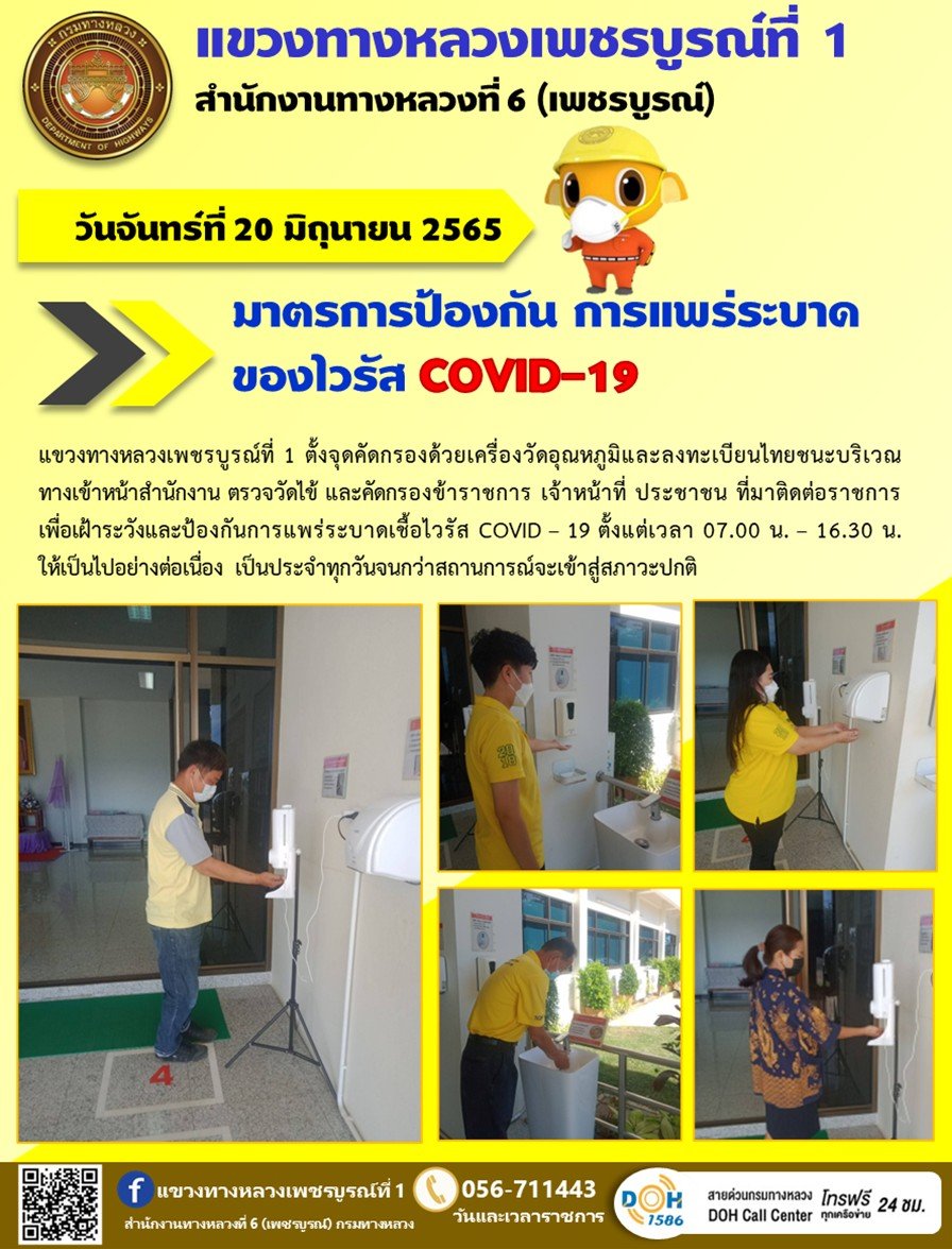 รายงานสถานการณ์ COVID-19 แขวงทางหลวงเพชรบูรณ์ที่ 1 ประจำวันที่ 20 มิถุนายน 2565