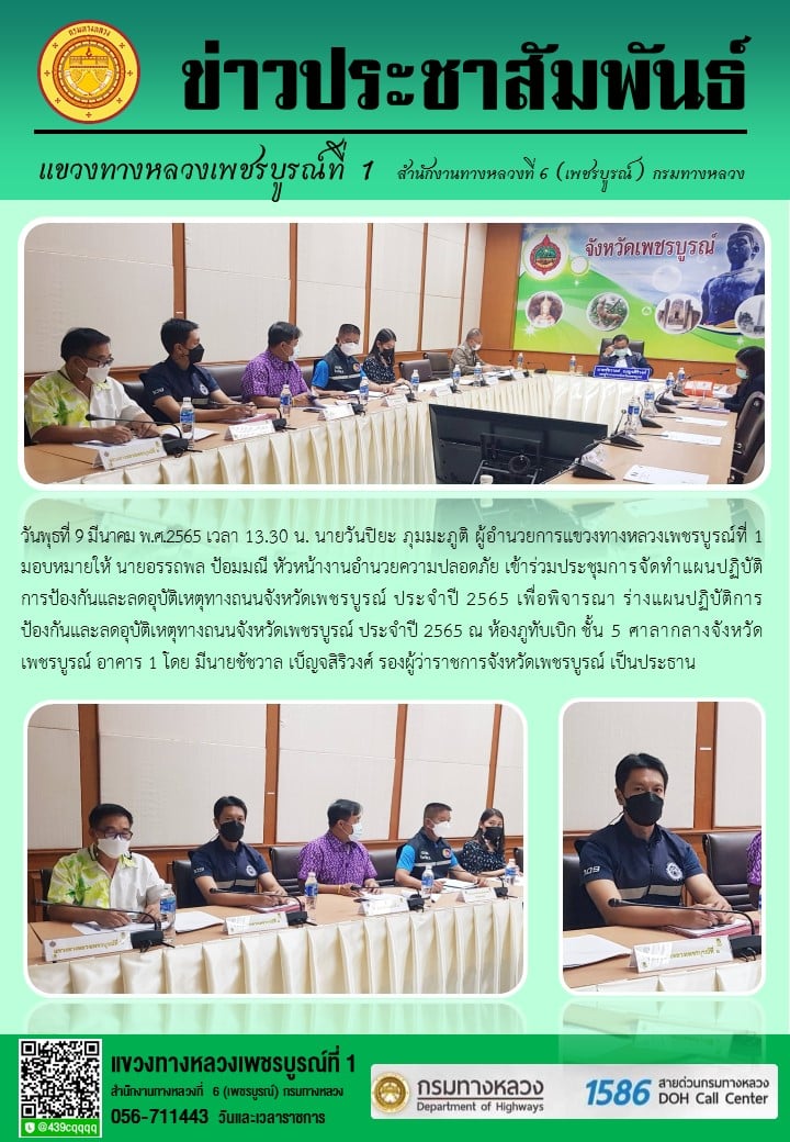 เข้าร่วมประชุมการจัดทำแผนปฏิบัติการป้องกันและลดอุบัติเหตุทางถนนจังหวัดเพชรบูรณ์ ประจำปี 2565 เพื่อพิจารณา ร่างแผนปฏิบัติการป้องกันและลดอุบัติเหตุทางถนนจังหวัดเพชรบูรณ์ ประจำปี 2565