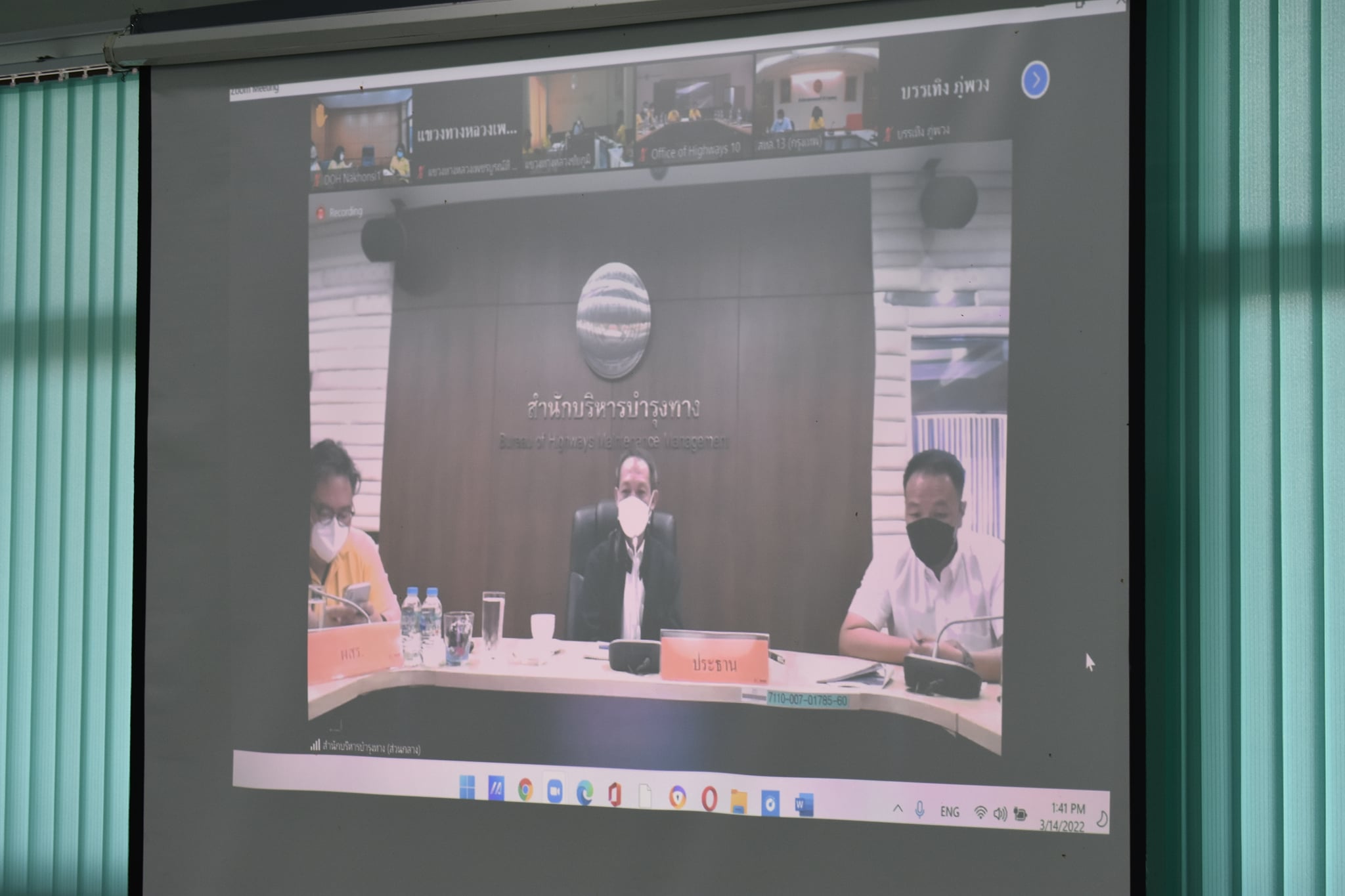 การประชุมการเตรียมความพร้อมด้านการอำนวยความสะดวกและปลอดภัยช่วงเทศกาลสงกรานต์ ปี 2565 ผ่าน ระบบ Application "ZOOM” จากห้องประชุม 1 ชั้น 3 สำนักบริหารบำรุงทาง กรมทางหลวง มายังส่วนภูมิภาค