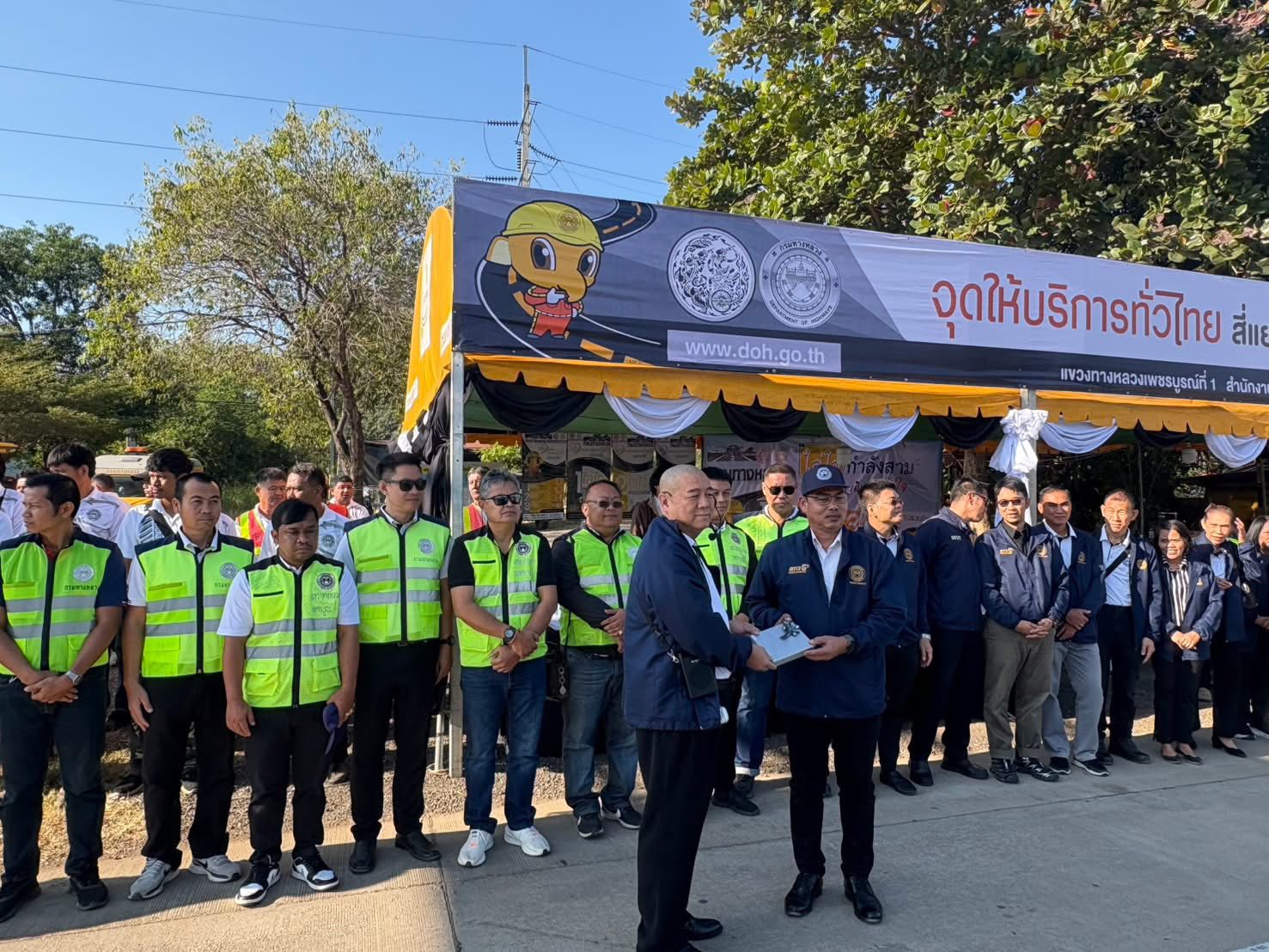 นายทวีศักดิ์ รุจิจรรยาวัฒน์ ผู้อำนวยการสำนักงานทางหลวงที่ 6 พร้อมคณะ และ นายเดชา พรวนพิทักษ์ ผู้อำนวยการแขวงทางหลวงเพชรบูรณ์ที่ 1 ลงพื้นที่ตรวจเยี่ยมจุดให้บริการทั่วไทย “สี่แยกพ่อขุนผาเมือง” และหน่วยเคลื่อนที่เร็ว เพื่อสร้างขวัญและกำลังใจให้เจ้าหน้าที่ผู้ปฏิบัติงานช่วงเทศกาลปีใหม่ 2569