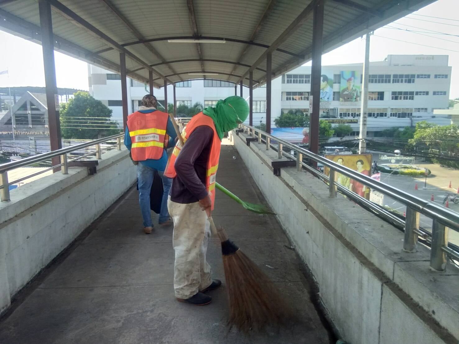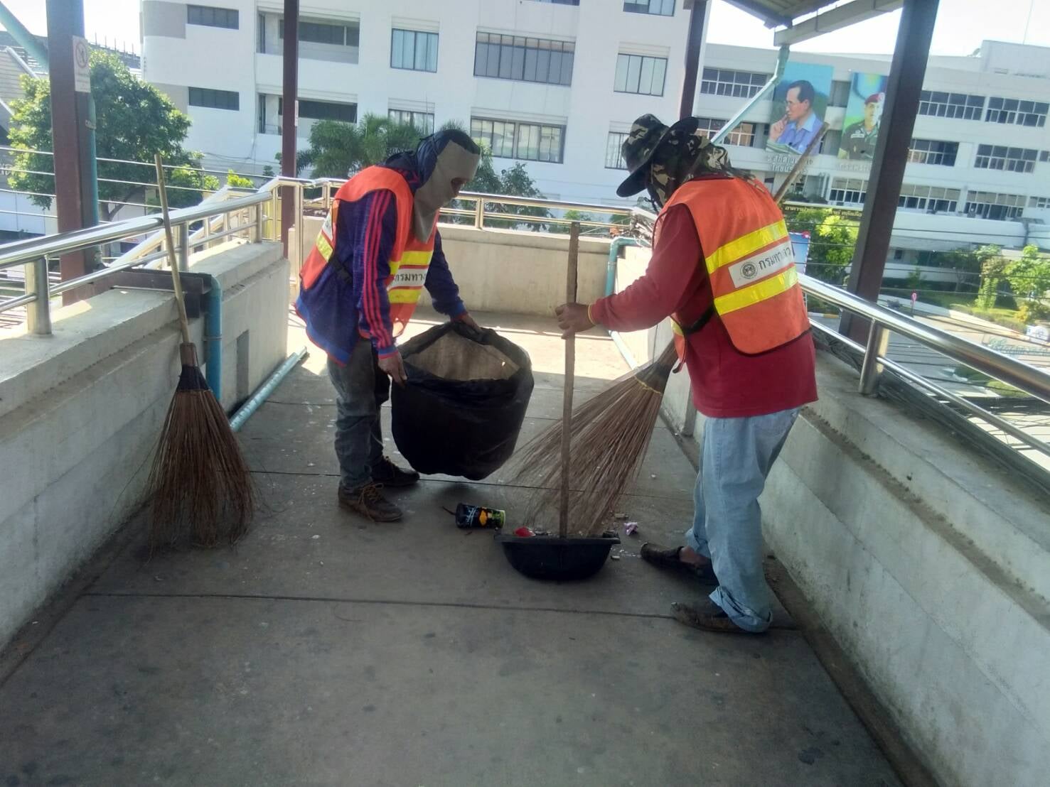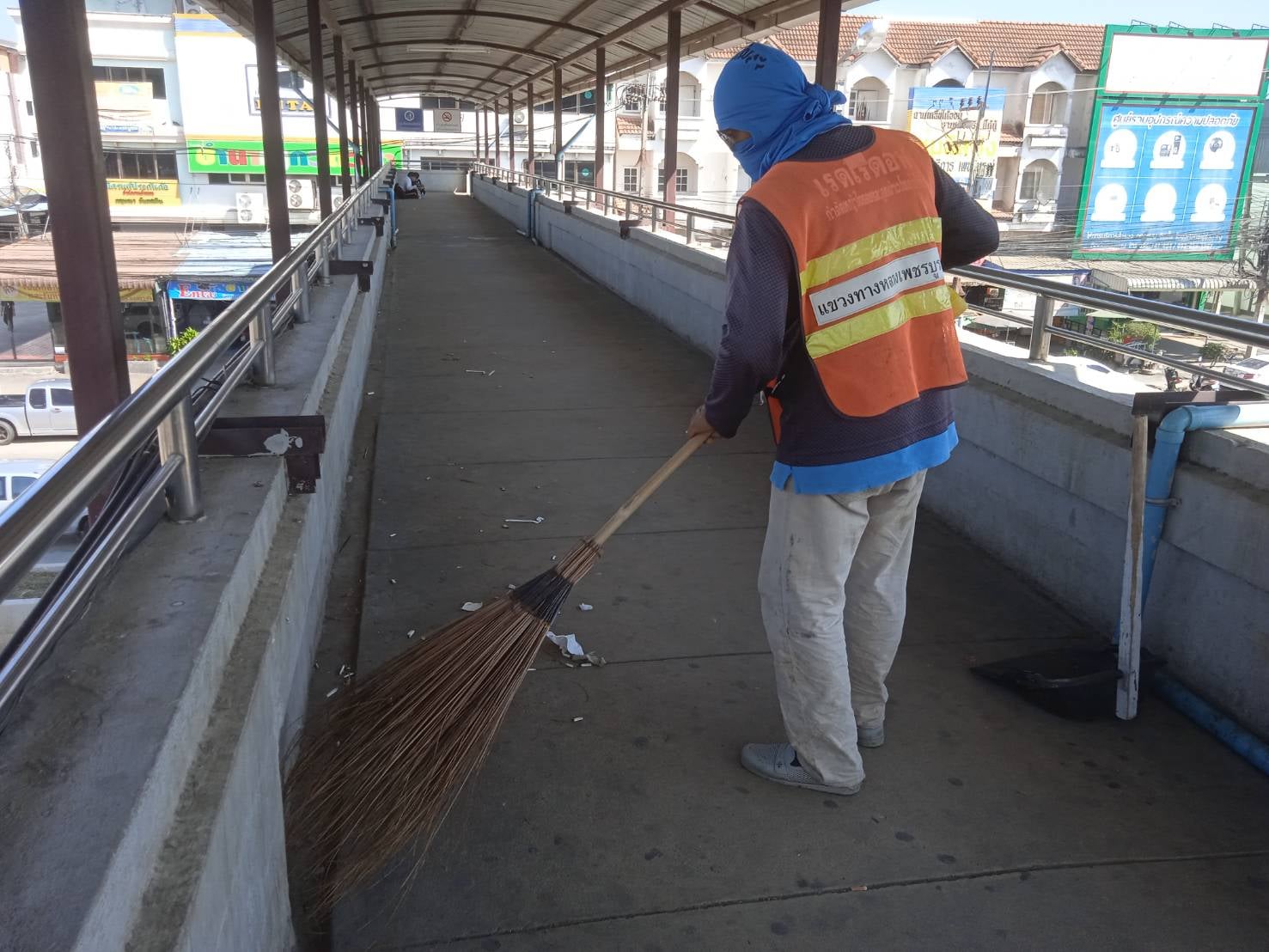 ดำเนินการทำความสะอาดสะพานลอยหน้าโรงพยาบาลเพชรบูรณ์ ทางหลวงหมายเลข 21 ตอน บ้านโตก - หัวนา ที่กม. 223+630