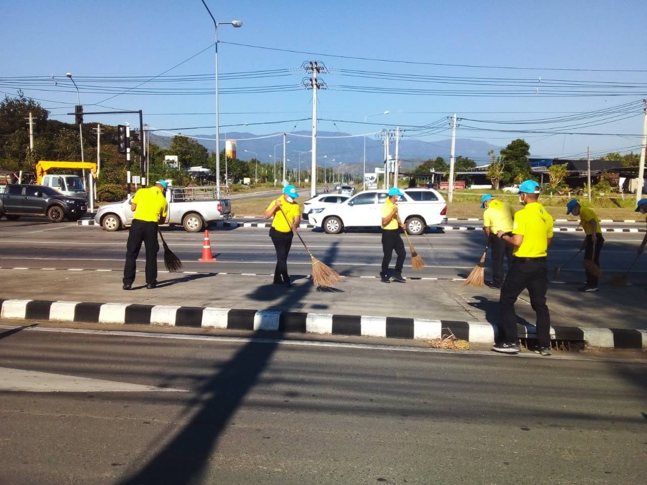 การทำความสะอาด ผิว ไหล่ทาง และทาสีขาวดำขอบเกาะแบ่งถนนบนทางหลวงหมายเลข 21 ตอน วังชมภู - บ้านโตก ที่กม.215+125 (แยกบ้านโตก)