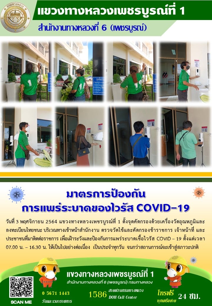 รายงานสถานการณ์ป้องกัน COVID-19 แขวงทางหลวงเพชรบูรณ์ที่ 1 ประจำวันที่ 3 พฤศจิกายน 2564