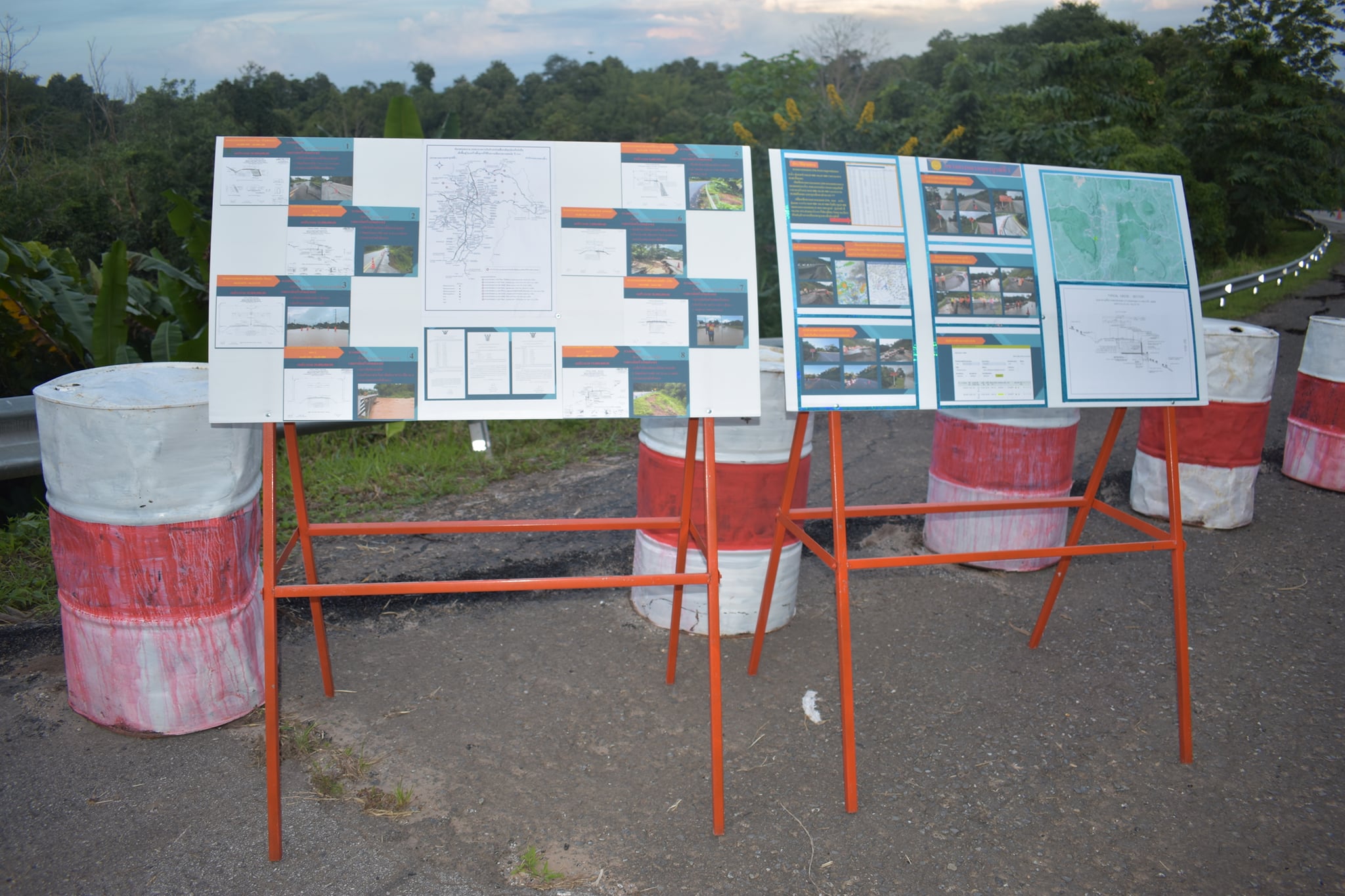 ลงพื้นที่ตรวจสอบความเสียหายจากอุทกภัยคันทางสไลด์ผิวทางทรุดตัว ในทางหลวงหมายเลข 2196 ตอน นางั่ว - ทุ่งสมอ ระหว่าง กม.18+500 - กม.18+700 ด้านขวาทาง