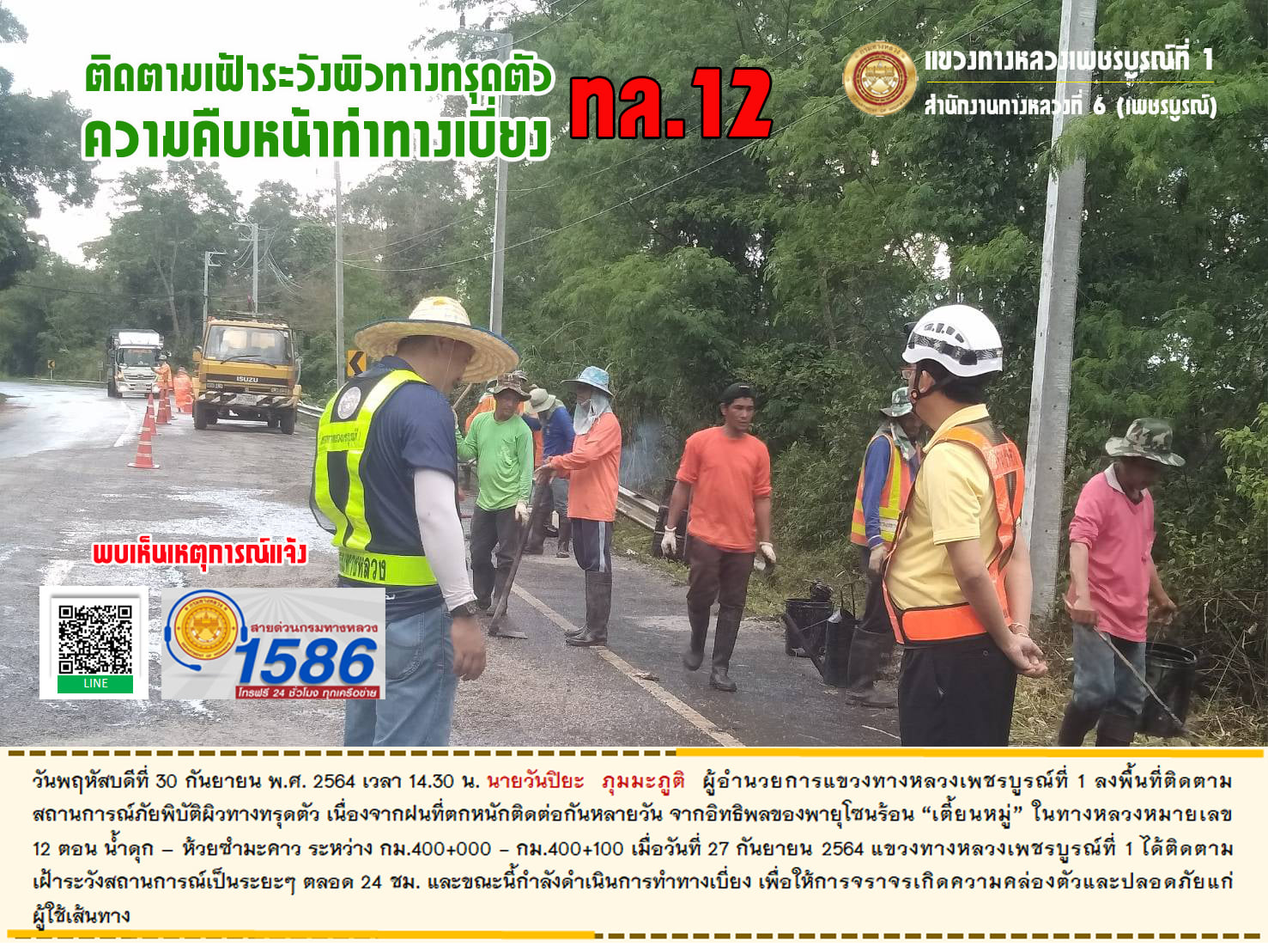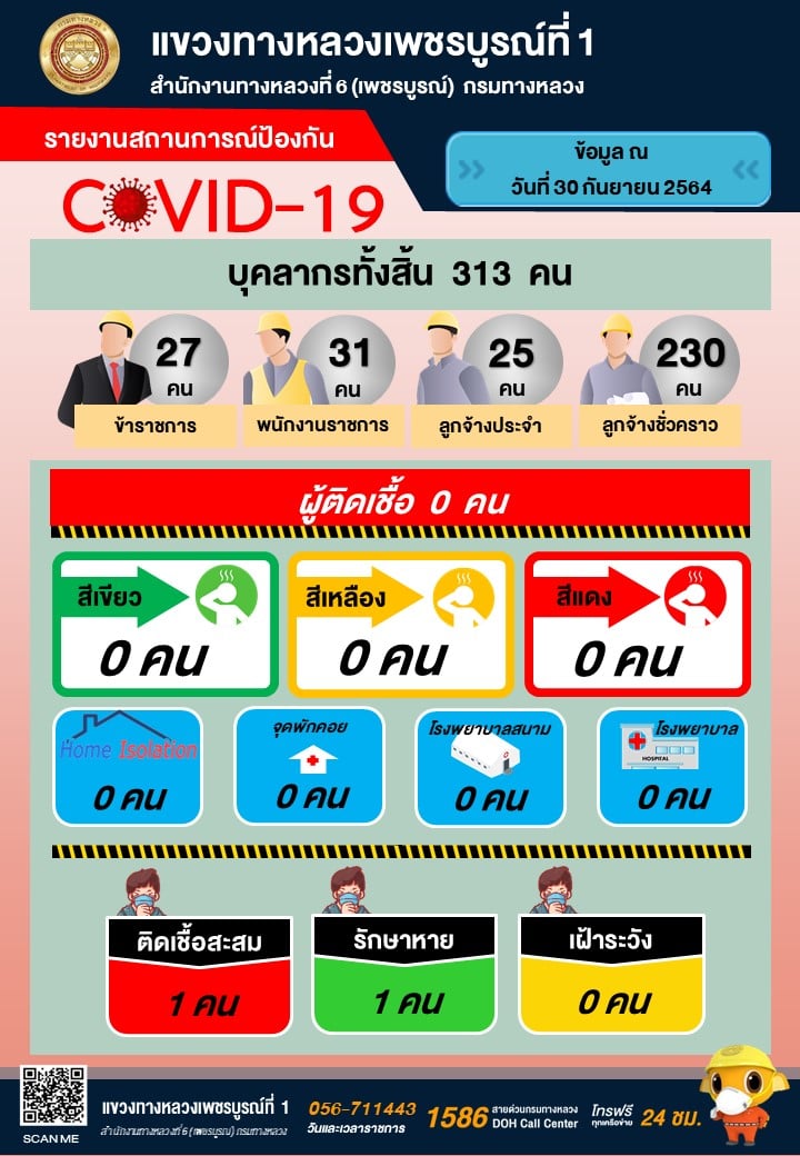 รายงานสถานการณ์ป้องกัน COVID-19 แขวงทางหลวงเพชรบูรณ์ที่ 1 ประจำวันที่ 30 กันยายน 2564