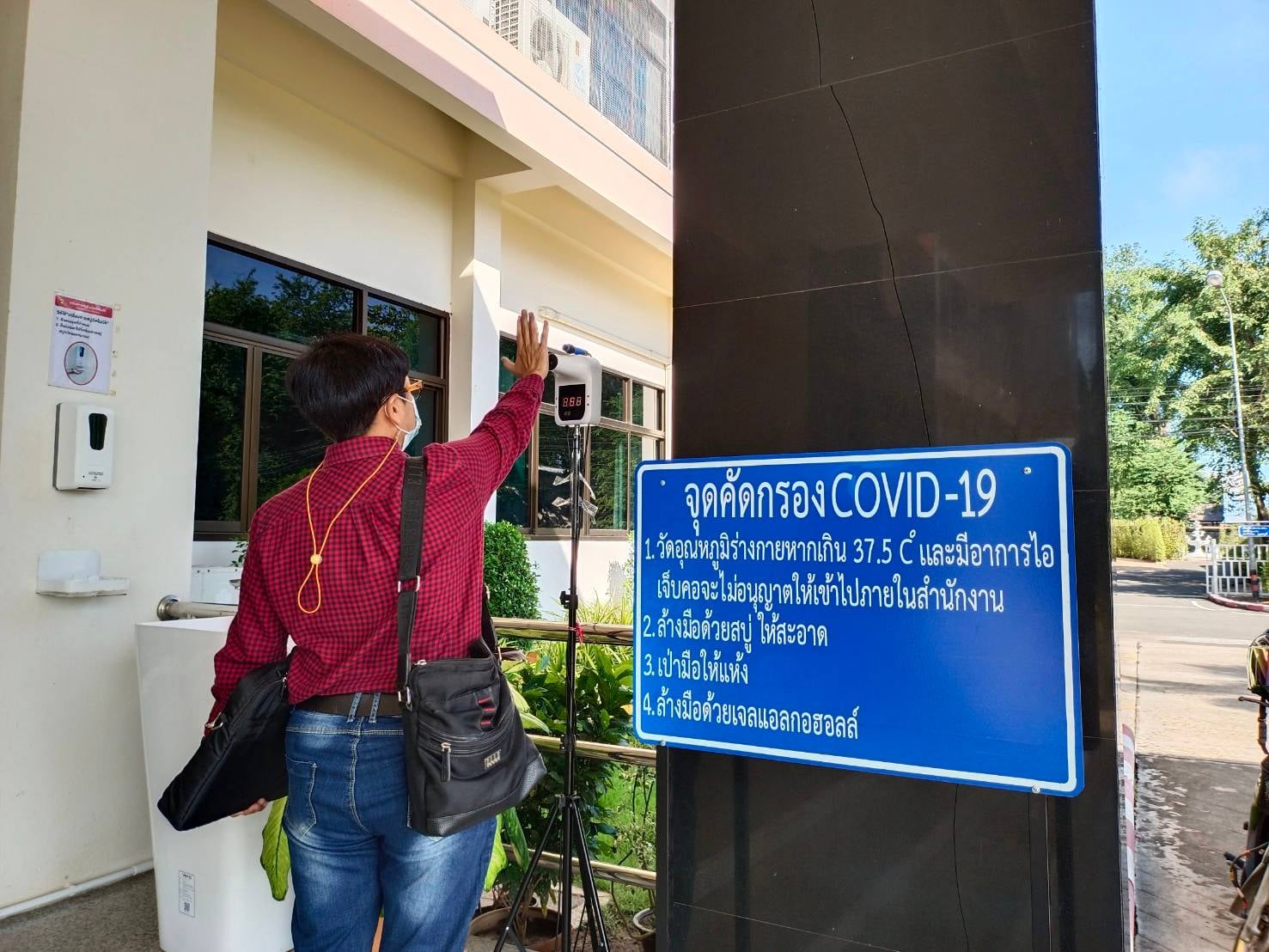 แขวงทางหลวงเพชรบูรณ์ที่ 1 จัดตั้งตู้พ่นน้ำยาฆ่าเชื้อ และจุดคัดกรองด้วยเครื่องวัดอุณหภูมิ วันที่ 4 ตุลาคม 2564 ตั้งแต่เวลา 07.00 น. – 16.30 น.