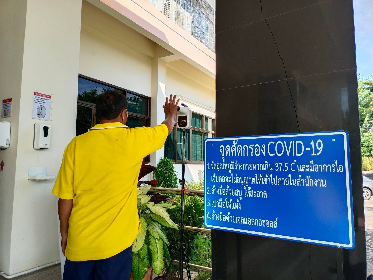 แขวงทางหลวงเพชรบูรณ์ที่ 1 จัดตั้งตู้พ่นน้ำยาฆ่าเชื้อ และจุดคัดกรองด้วยเครื่องวัดอุณหภูมิ วันที่ 30 กันยายน 2564 ตั้งแต่เวลา 07.00 น. – 16.30 น.