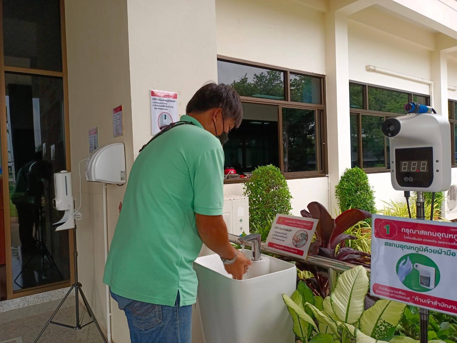 แขวงทางหลวงเพชรบูรณ์ที่ 1 จัดตั้งตู้พ่นน้ำยาฆ่าเชื้อ และจุดคัดกรองด้วยเครื่องวัดอุณหภูมิ วันที่ 17 กันยายน 2564 ตั้งแต่เวลา 07.00 น. – 16.30 น.