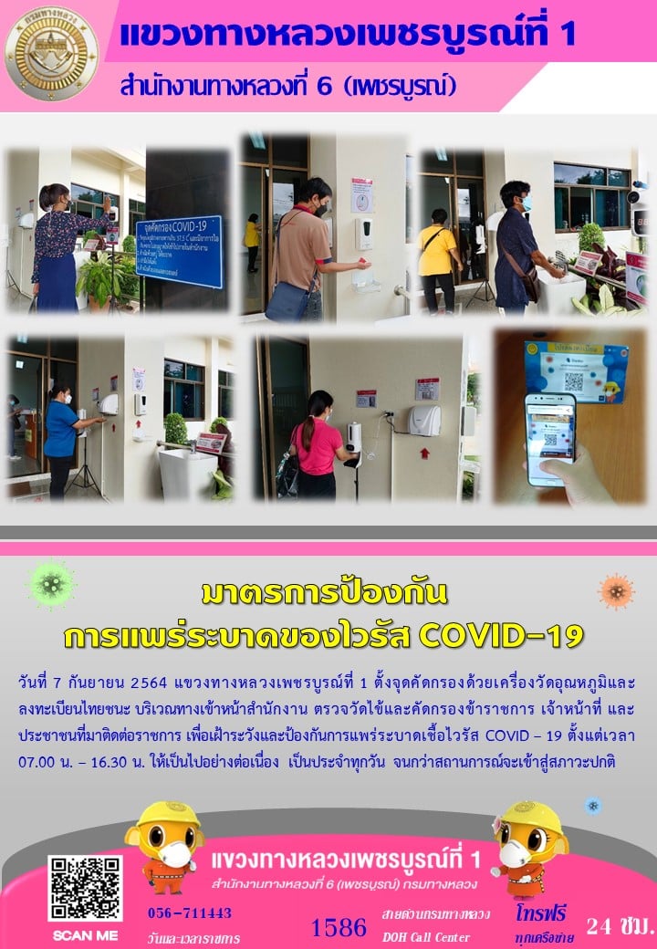 รายงานสถานการณ์ป้องกัน COVID-19 แขวงทางหลวงเพชรบูรณ์ที่ 1 ประจำวันที่ 7 กันยายน 2564