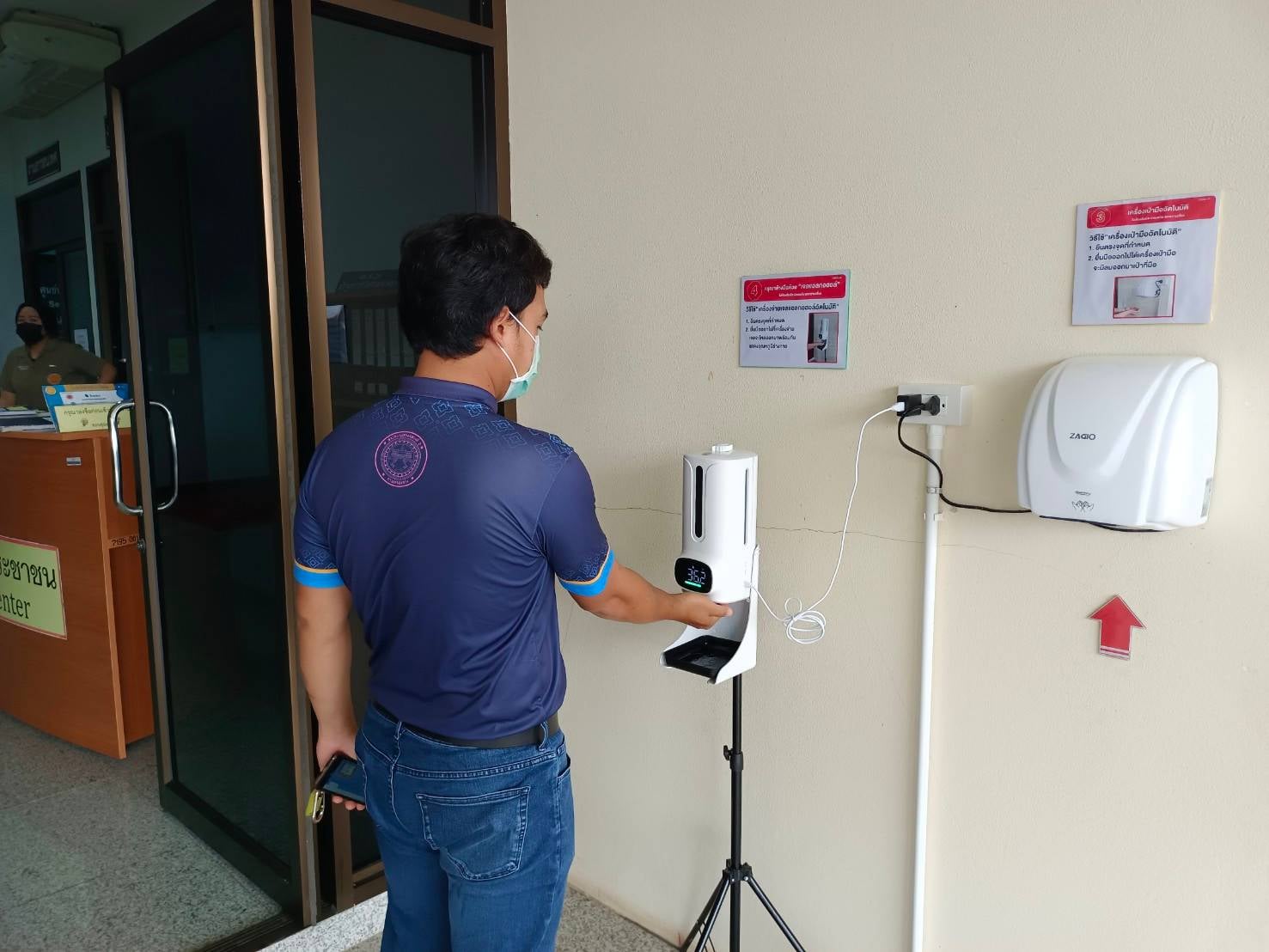 แขวงทางหลวงเพชรบูรณ์ที่ 1 จัดตั้งตู้พ่นน้ำยาฆ่าเชื้อ และจุดคัดกรองด้วยเครื่องวัดอุณหภูมิ วันที่ 8 กันยายน 2564 ตั้งแต่เวลา 07.00 น. – 16.300