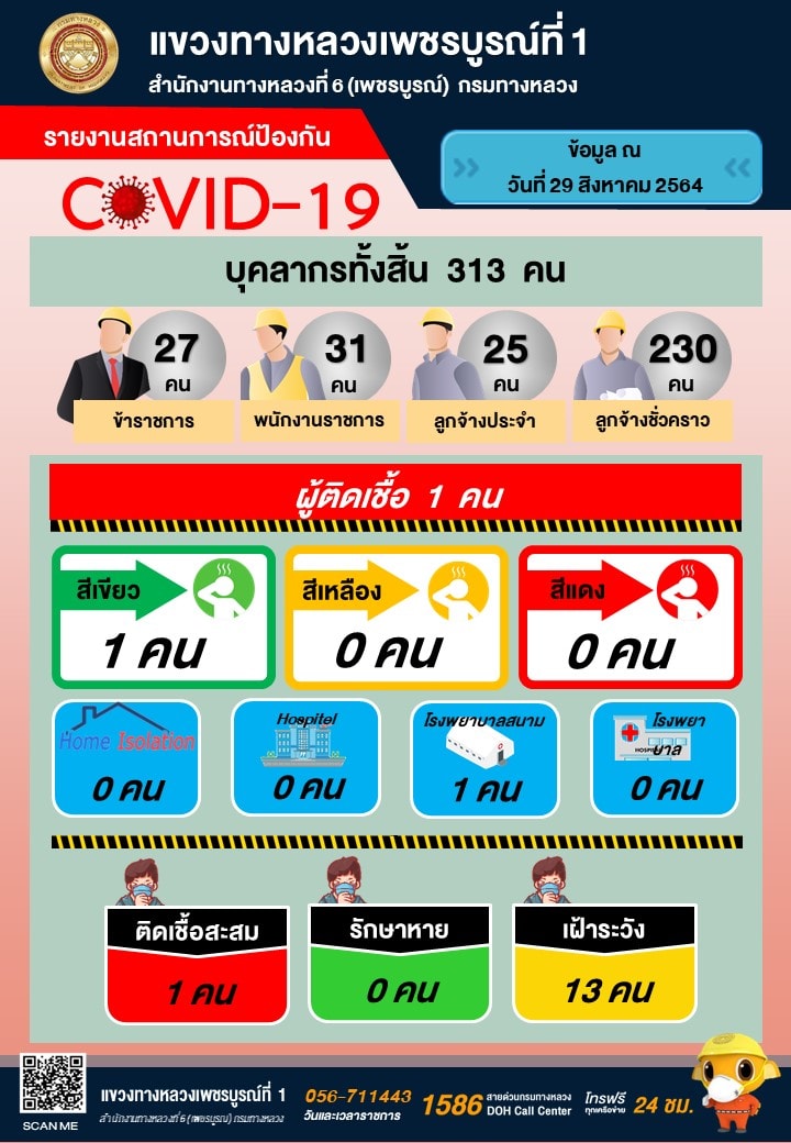 รายงานสถานการณ์ COVID-19 แขวงทางหลวงเพชรบูรณ์ที่ 1 ประจำวันที่ 29 สิงหาคม 2564
