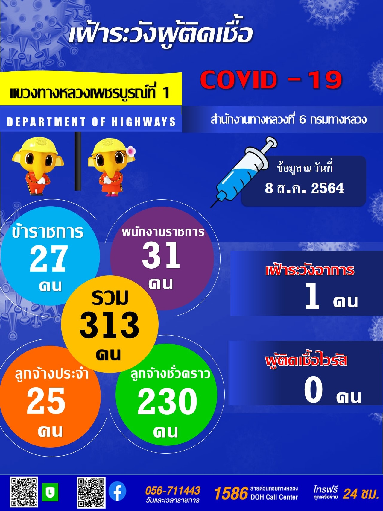รายงานสถานการณ์ COVID-19 แขวงทางหลวงเพชรบูรณ์ที่ 1 ประจำวันที่ 8 สิงหาคม 2564