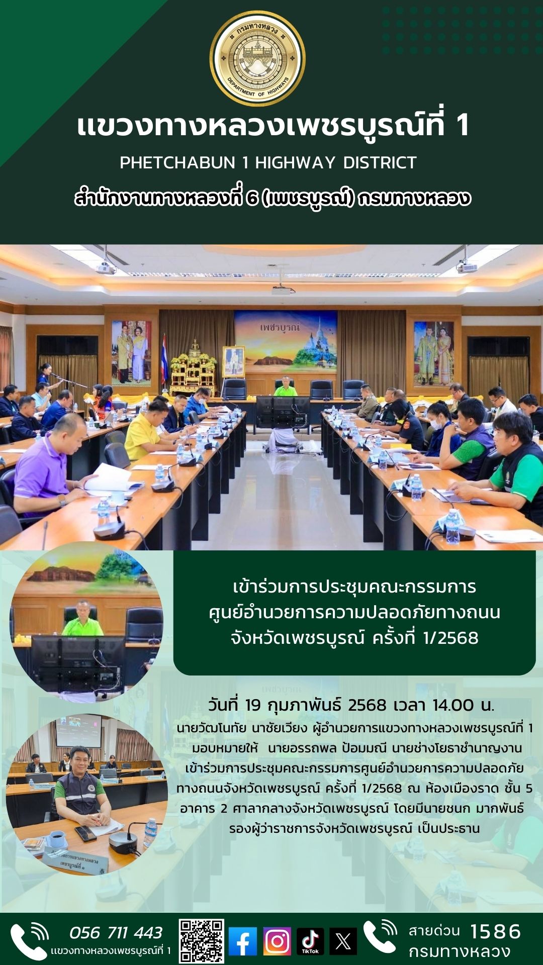 ร่วมให้การต้อนรับเเละรับมอบนโยบายการบริหารงาน จากนายทวีศักดิ์ รุจิจรรยาวัฒน์ ผู้อำนวยการสำนักงานทางหลวงที่ 6 เนื่องในโอกาสเข้ารักษาการตำแหน่งผู้อำนวยการแขวงทางหลวงเพชรบูรณ์ที่ 1