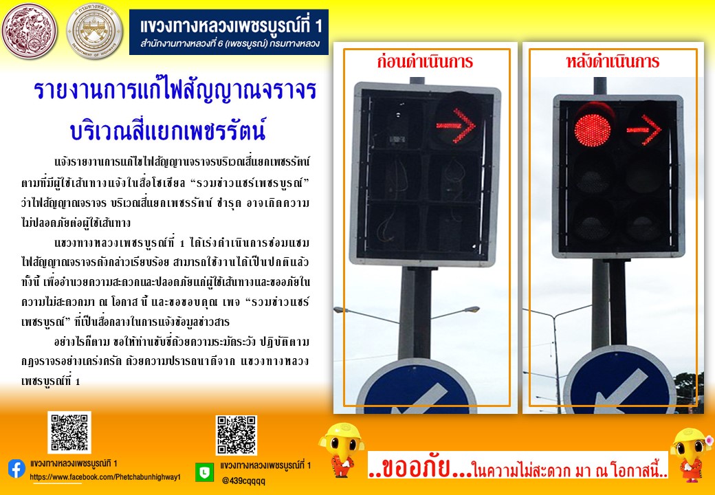 รายงานการแก้ไขไฟสัญญานจราจรบริเวณสี่แยกเพชรรัตน์