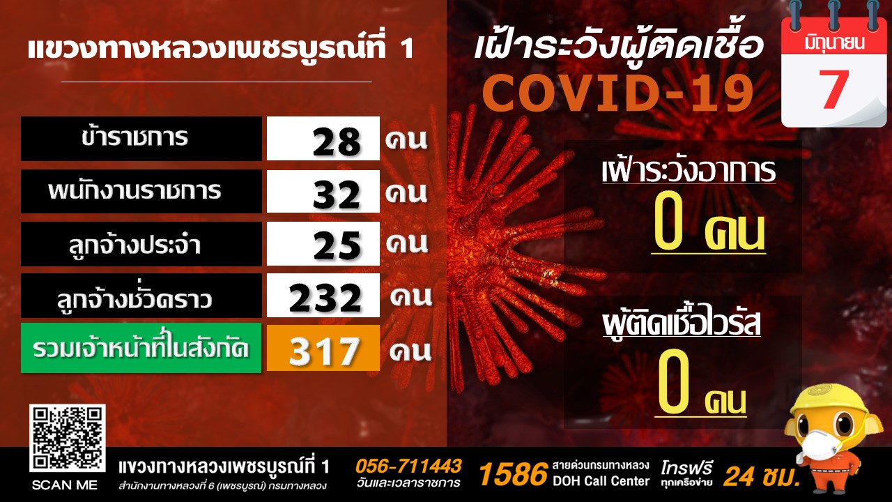 รายงานสถานการณ์ COVID-19 แขวงทางหลวงเพชรบูรณ์ที่ 1 ประจำวันที่ 7 มิถุนายน 2564