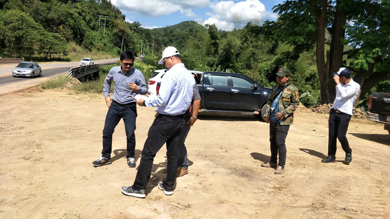พิจารณาแนวเขตพื้นที่ก่อสร้างถนนทดแทนน้ำท่วมของโครงการอ่างเก็บน้ำห้วยน้ำเฮี้ย |