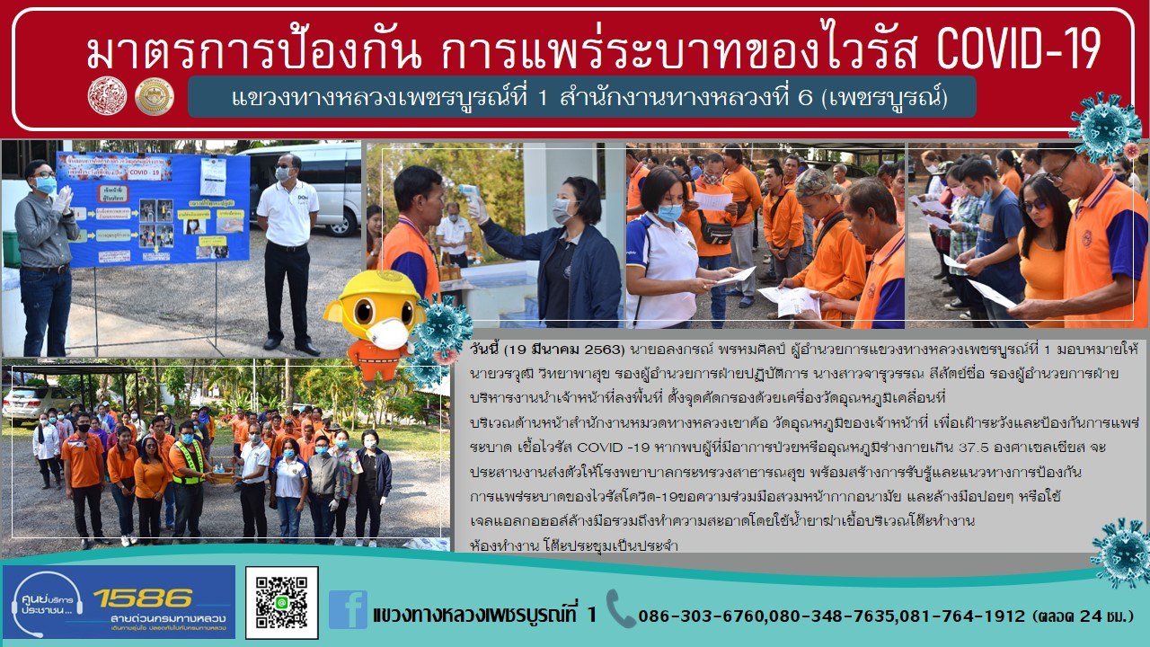 #แขวงทางหลวงเพชรบูรณ์ที่1จัดชุดคัดกรองด้วยเครื่องวัดอุณหภูมิเคลื่อนที่แก่เจ้าหน้าที่หมวดทางหลวง