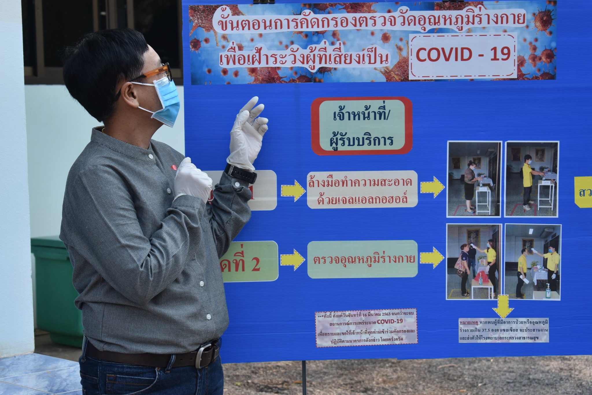 หากพบผู้ที่มีอาการป่วยหรืออุณหภูมิร่างกายเกิน 37.5 องศาเซลเซียส จะประสานงานส่งตัวให้โรงพยาบาลกระทรวงสาธารณสุข พร้อมสร้างการรับรู้และแนวทางการป้องกันการแพร่ระบาดของไวรัสโควิด-19