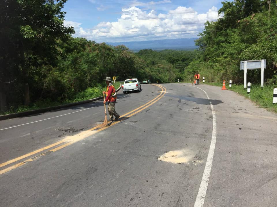 แขวงหลวงเพชรบูรณ์ที่ 1 โดยหมวดทางหลวงเขาค้อ เข้าดำเนินการอำนวยความสะดวกด้านการจราจร ในการเคลื่อนย้ายรถบรรทุกปูนซิเมนต์ผงที่ขึ้นเนินบริเวณฐานลำปางหลวงไม่ไหว ในทางหลวงหมายเลข 2196 ตอน นางั่ว - ทุ่งสมอ ที่ กม.10+300 (ด้านซ้ายทาง) พร้อมทำความสะอาดผิวทางเรียบร้อยแล้ว การจราจรผ่านได้เป็นปกติ เมื่อเวลาประมาณ 16.15 น.
