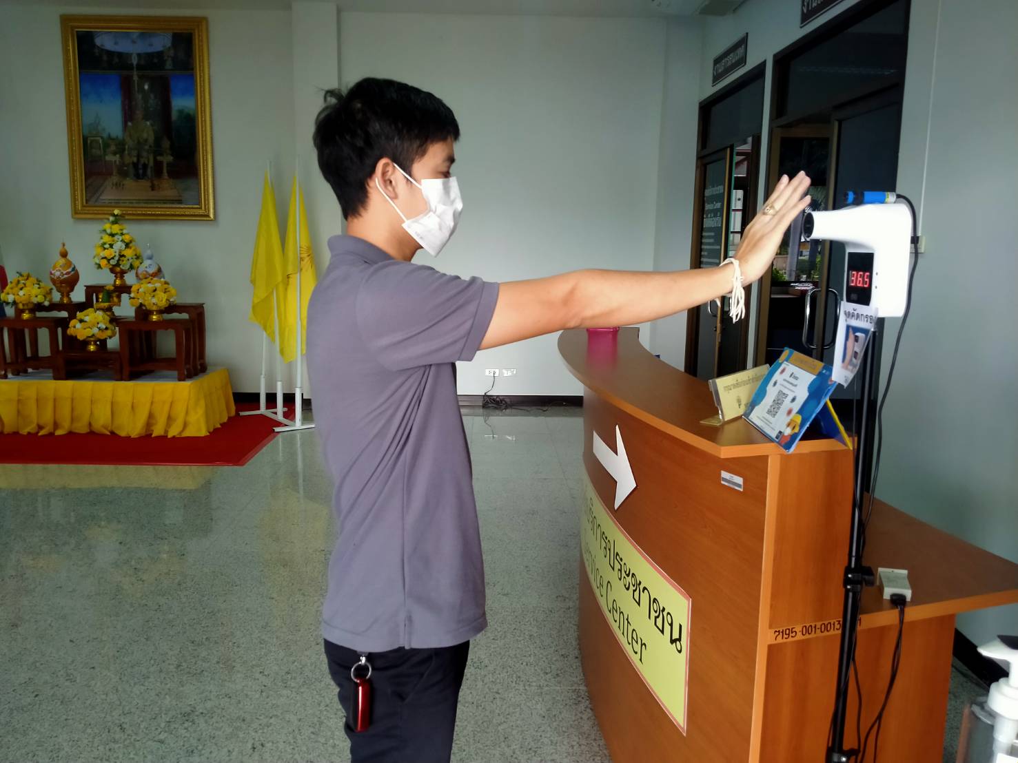 ได้จัดตั้งจุดคัดกรองด้วยเครื่องวัดอุณหภูมิ บริเวณทางเข้าด้านหน้สำนักงาน ตรวจวัดไข้และคัดกรองข้าราชการ เจ้าหน้าที่ และประชาชนที่มาติดต่อราชการ เพื่อเฝ้าระวังและป้องกันการแพร่ระบาด เชื้อไวรัส COVID – 19 ตั้งแต่เวลา 07.00 น. – 16.30 น. ให้เป็นไปอย่างต่อเนื่องเป็นประจำทุกวัน จนกว่าสถานการณ์จะเข้าสู่สภาวะปกติ