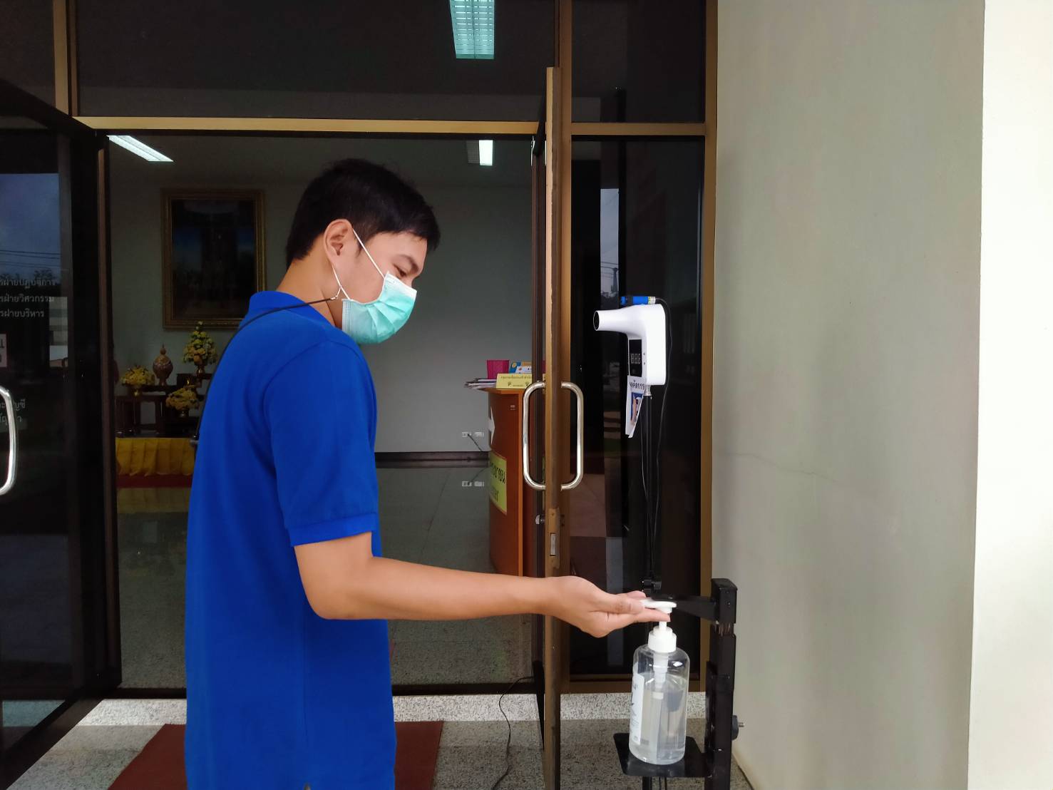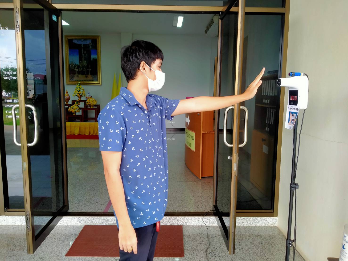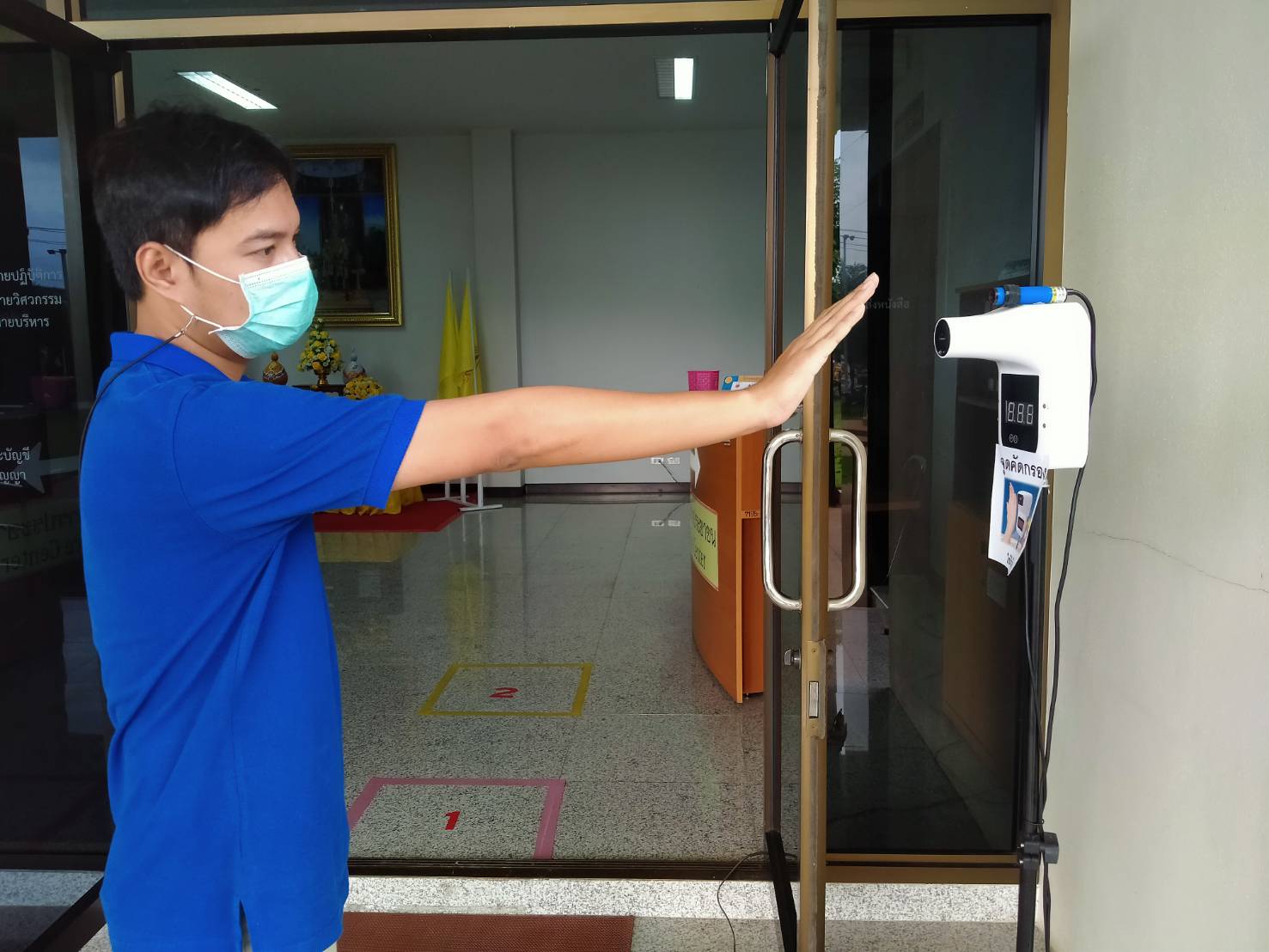 ได้จัดตั้งจุดคัดกรองด้วยเครื่องวัดอุณหภูมิ บริเวณทางเข้าด้านหน้สำนักงาน ตรวจวัดไข้และคัดกรองข้าราชการ เจ้าหน้าที่ และประชาชนที่มาติดต่อราชการ เพื่อเฝ้าระวังและป้องกันการแพร่ระบาด เชื้อไวรัส COVID – 19 ตั้งแต่เวลา 07.00 น. – 16.30 น. ให้เป็นไปอย่างต่อเนื่องเป็นประจำทุกวัน จนกว่าสถานการณ์จะเข้าสู่สภาวะปกติ