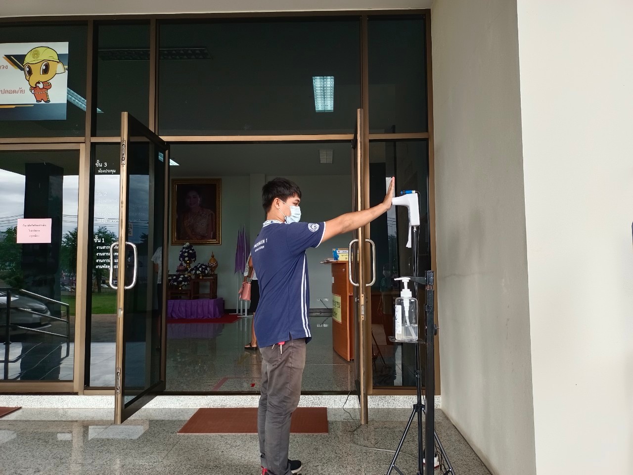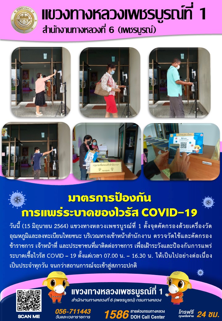 ได้จัดตั้งจุดคัดกรองด้วยเครื่องวัดอุณหภูมิ บริเวณทางเข้าด้านหน้สำนักงาน ตรวจวัดไข้และคัดกรองข้าราชการ เจ้าหน้าที่ และประชาชนที่มาติดต่อราชการ เพื่อเฝ้าระวังและป้องกันการแพร่ระบาด เชื้อไวรัส COVID – 19 ตั้งแต่เวลา 07.00 น. – 16.30 น. ให้เป็นไปอย่างต่อเนื่องเป็นประจำทุกวัน จนกว่าสถานการณ์จะเข้าสู่สภาวะปกติ