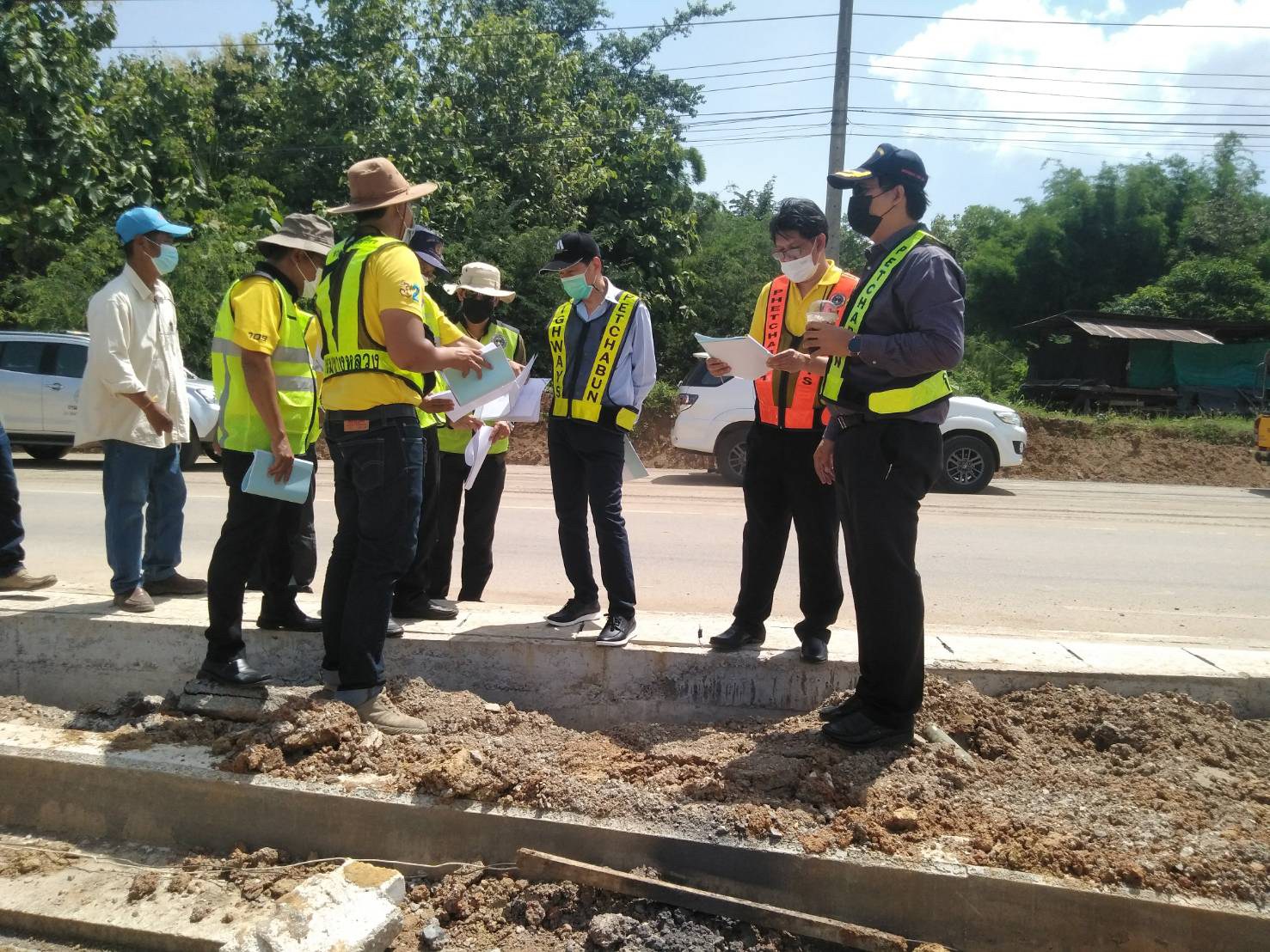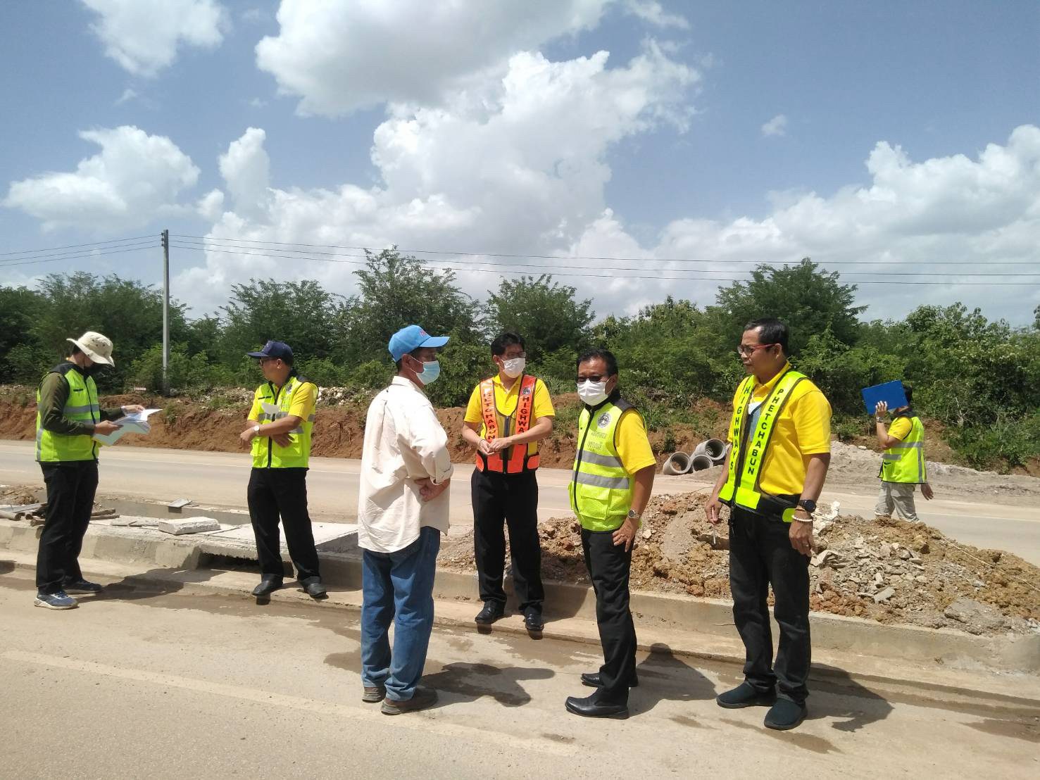 นายอภิชาต อุปสิทธิ์ ผู้อำนวยการสำนักงานทางหลวงที่ 6 และนายวันปิยะ ภุมมะภูติ ผู้อำนวยการแขวงทางหลวงเพชรบูรณ์ที่ 1 พร้อมด้วยคณะกรรมการตรวจรับพัสดุ และผู้ควบคุมงานตรวจรับงานงวดที่ 1 (ครั้งที่ 1) งานจ้างเหมาทำการโครงการพัฒนาทางหลวงเพื่อเพิ่มประสิทธิภาพการจราจรและขนส่ง กิจกรรมยกระดับมาตรฐานและเพิ่มประสิทธิภาพทางหลวง ทางหลวงหมายเลข 2372 ตอน วังบาล - ห้วยแล้ง ระหว่าง กม.3+900 - กม.5+600