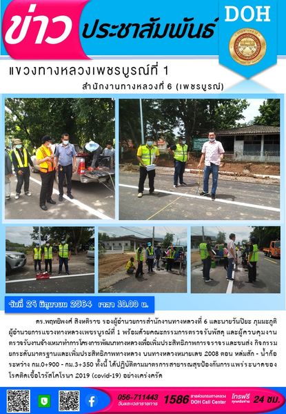 ดร.พฤทธิพงศ์ สิงหติราช รองผู้อำนวยการสำนักงานทางหลวงที่ 6 และนายวันปิยะ ภุมมะภูติ ผู้อำนวยการแขวงทางหลวงเพชรบูรณ์ที่ 1 พร้อมด้วยคณะกรรมการตรวจรับพัสดุ และผู้ควบคุมงาน ตรวจรับงานจ้างเหมาทำการโครงการพัฒนาทางหลวงเพื่อเพิ่มประสิทธิภาพการจราจรและขนส่ง กิจกรรมยกระดับมาตรฐานและเพิ่มประสิทธิภาพทางหลวง บนทางหลวงหมายเลข 2008 ตอน หล่มสัก - น้ำก้อ ระหว่าง กม.0+900 - กม.3+350 ทั้งนี้ ได้ปฏิบัติตามมาตรการสาธารณสุขป้องกันการแพร่ระบาดของ โรคติดเชื้อไวรัสโคโรนา 2019 (covid-19) อย่างเคร่งครัด
