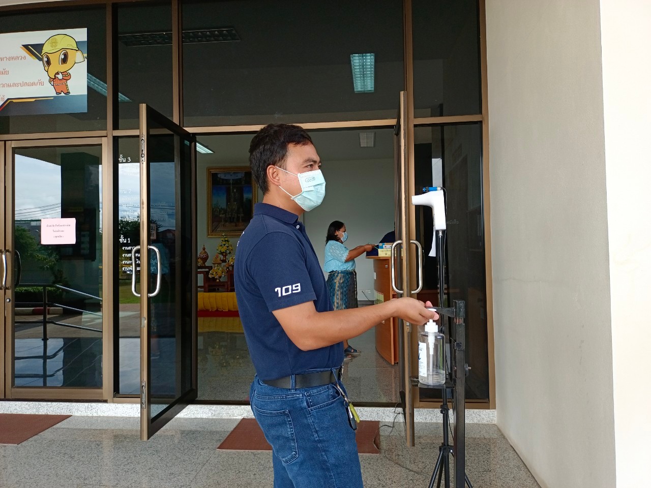 แขวงทางหลวงเพชรบูรณ์ที่ 1 จัดตั้งตู้พ่นน้ำยาฆ่าเชื้อ และจุดคัดกรองด้วยเครื่องวัดอุณหภูมิ วันที่ 9 กรกฎาคม 2564 ตั้งแต่เวลา 07.00 น. – 16.30 น.