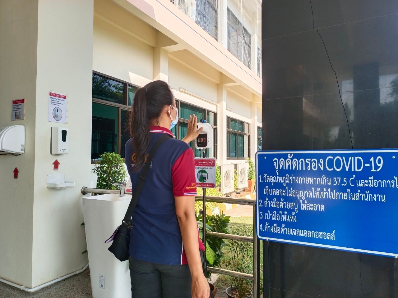 ได้จัดตั้งจุดคัดกรองด้วยเครื่องวัดอุณหภูมิ บริเวณทางเข้าด้านหน้สำนักงาน ตรวจวัดไข้และคัดกรองข้าราชการ เจ้าหน้าที่ และประชาชนที่มาติดต่อราชการ เพื่อเฝ้าระวังและป้องกันการแพร่ระบาด เชื้อไวรัส COVID – 19 ตั้งแต่เวลา 07.00 น. – 16.30 น. ให้เป็นไปอย่างต่อเนื่องเป็นประจำทุกวัน จนกว่าสถานการณ์จะเข้าสู่สภาวะปกติ