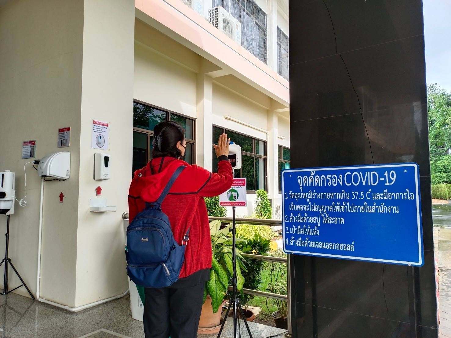 ได้จัดตั้งจุดคัดกรองด้วยเครื่องวัดอุณหภูมิ บริเวณทางเข้าด้านหน้สำนักงาน ตรวจวัดไข้และคัดกรองข้าราชการ เจ้าหน้าที่ และประชาชนที่มาติดต่อราชการ เพื่อเฝ้าระวังและป้องกันการแพร่ระบาด เชื้อไวรัส COVID – 19 ตั้งแต่เวลา 07.00 น. – 16.30 น. ให้เป็นไปอย่างต่อเนื่องเป็นประจำทุกวัน จนกว่าสถานการณ์จะเข้าสู่สภาวะปกติ