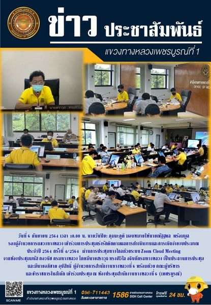 วันที่ 6 กันยายน 2564 เวลา 10.00 น. นายวันปิยะ ภุมมะภูติ มอบหมายให้นายณัฐฐพล พร้อมมูล รองผู้อำนวยการแขวงทางหลวง เข้าร่วมการประชุมเร่งรัดติดตามผลการดำเนินงานและการเบิกจ่ายงบประมาณประจำปี 2564 ครั้งที่ 4/2564 ผ่านการประชุมทางไกลด้วยระบบ Zoom Cloud Meeting จากห้องประชุมมนัส คอวนิช กรมทางหลวง โดยมีนายสราวุธ ทรงศิวิไล อธิบดีกรมทางหลวง เป็นประธานการประชุม และมีนายอภิชาต อุปสิทธิ์ ผู้อำนวยการสำนักงานทางหลวงที่ 6 พร้อมด้วย คณะผู้บริหาร และข้าราชการในสังกัด เข้าร่วมประชุม ณ ห้องประชุมสำนักงานทางหลวงที่ 6 (เพชรบูรณ์)