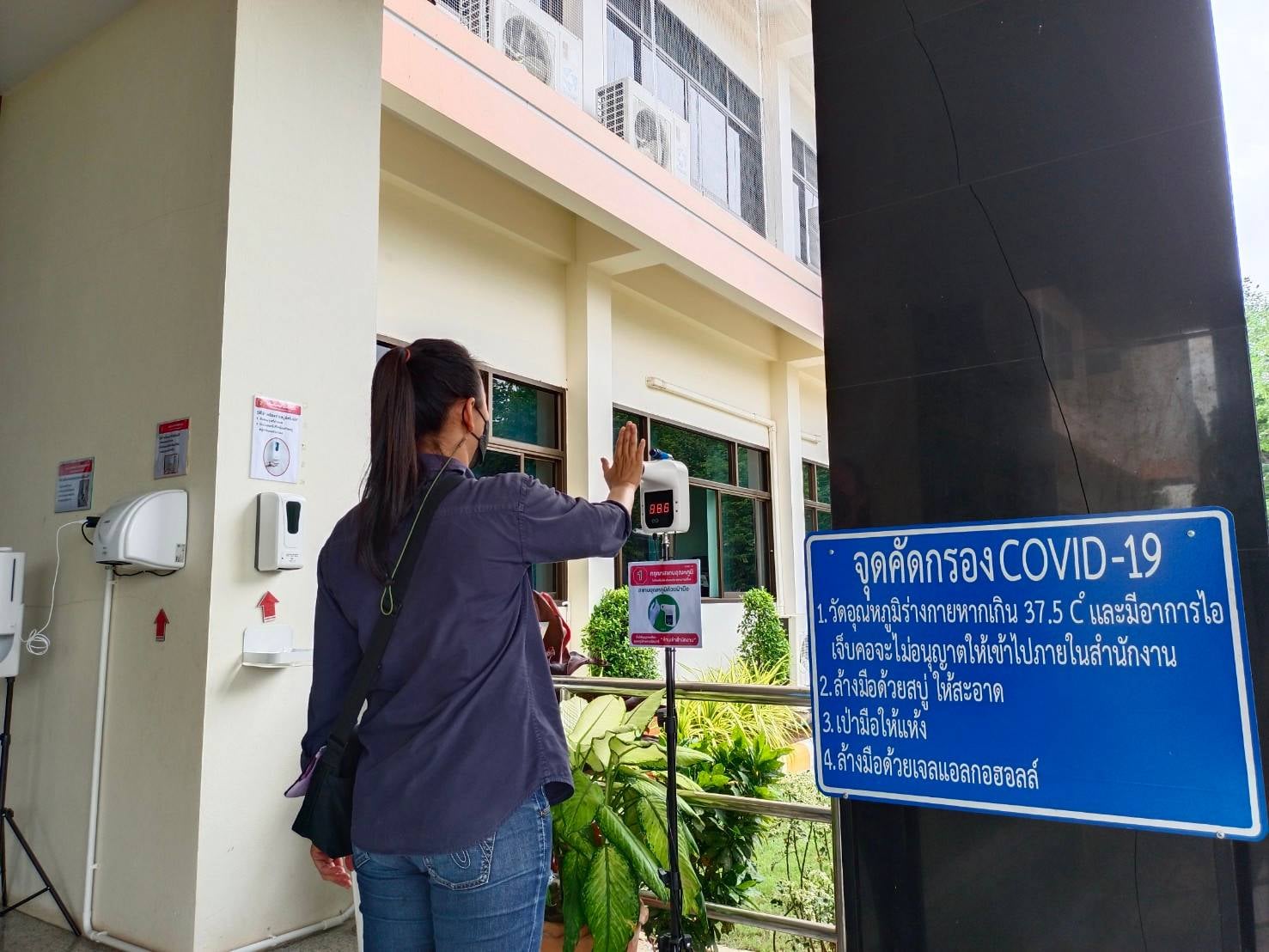 ได้จัดตั้งจุดคัดกรองด้วยเครื่องวัดอุณหภูมิ บริเวณทางเข้าด้านหน้สำนักงาน ตรวจวัดไข้และคัดกรองข้าราชการ เจ้าหน้าที่ และประชาชนที่มาติดต่อราชการ เพื่อเฝ้าระวังและป้องกันการแพร่ระบาด เชื้อไวรัส COVID – 19 ตั้งแต่เวลา 07.00 น. – 16.30 น. ให้เป็นไปอย่างต่อเนื่องเป็นประจำทุกวัน จนกว่าสถานการณ์จะเข้าสู่สภาวะปกติ