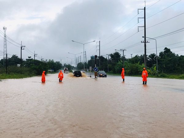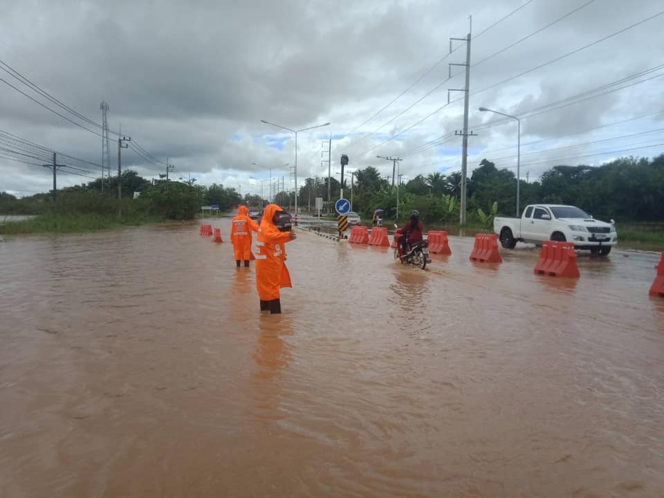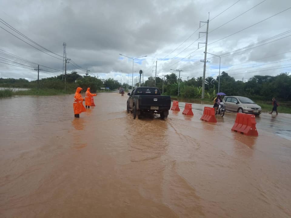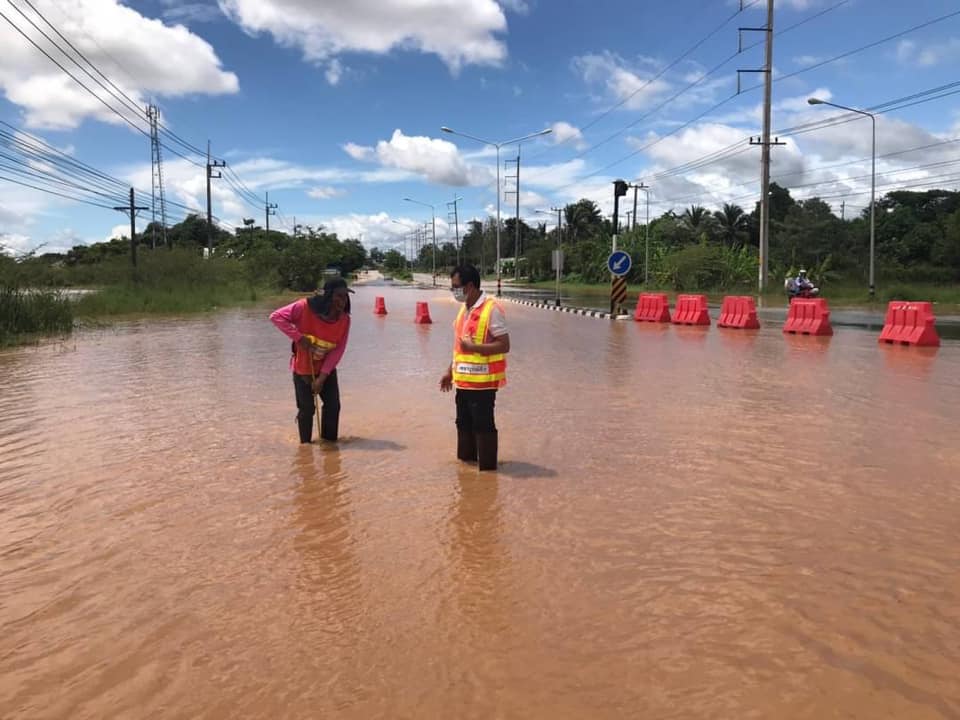 3.เกิดน้ำท่วมผิวทาง ระดับความสูงของน้ำอยู่ที่ระดับ 0.16 ม. การจราจรผ่านได้อย่างระมัดระวัง