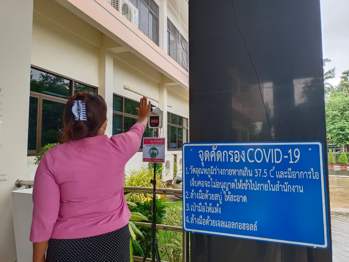 ได้จัดตั้งจุดคัดกรองด้วยเครื่องวัดอุณหภูมิ บริเวณทางเข้าด้านหน้สำนักงาน ตรวจวัดไข้และคัดกรองข้าราชการ เจ้าหน้าที่ และประชาชนที่มาติดต่อราชการ เพื่อเฝ้าระวังและป้องกันการแพร่ระบาด เชื้อไวรัส COVID – 19 ตั้งแต่เวลา 07.00 น. – 16.30 น. ให้เป็นไปอย่างต่อเนื่องเป็นประจำทุกวัน จนกว่าสถานการณ์จะเข้าสู่สภาวะปกติ